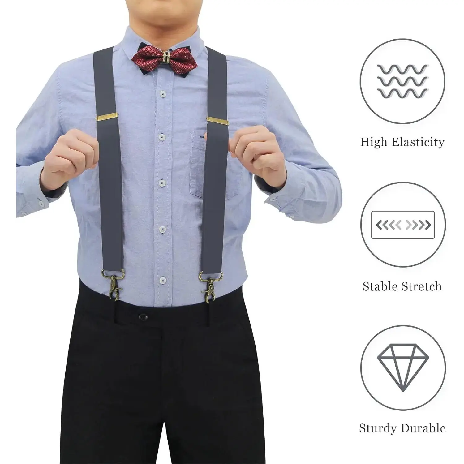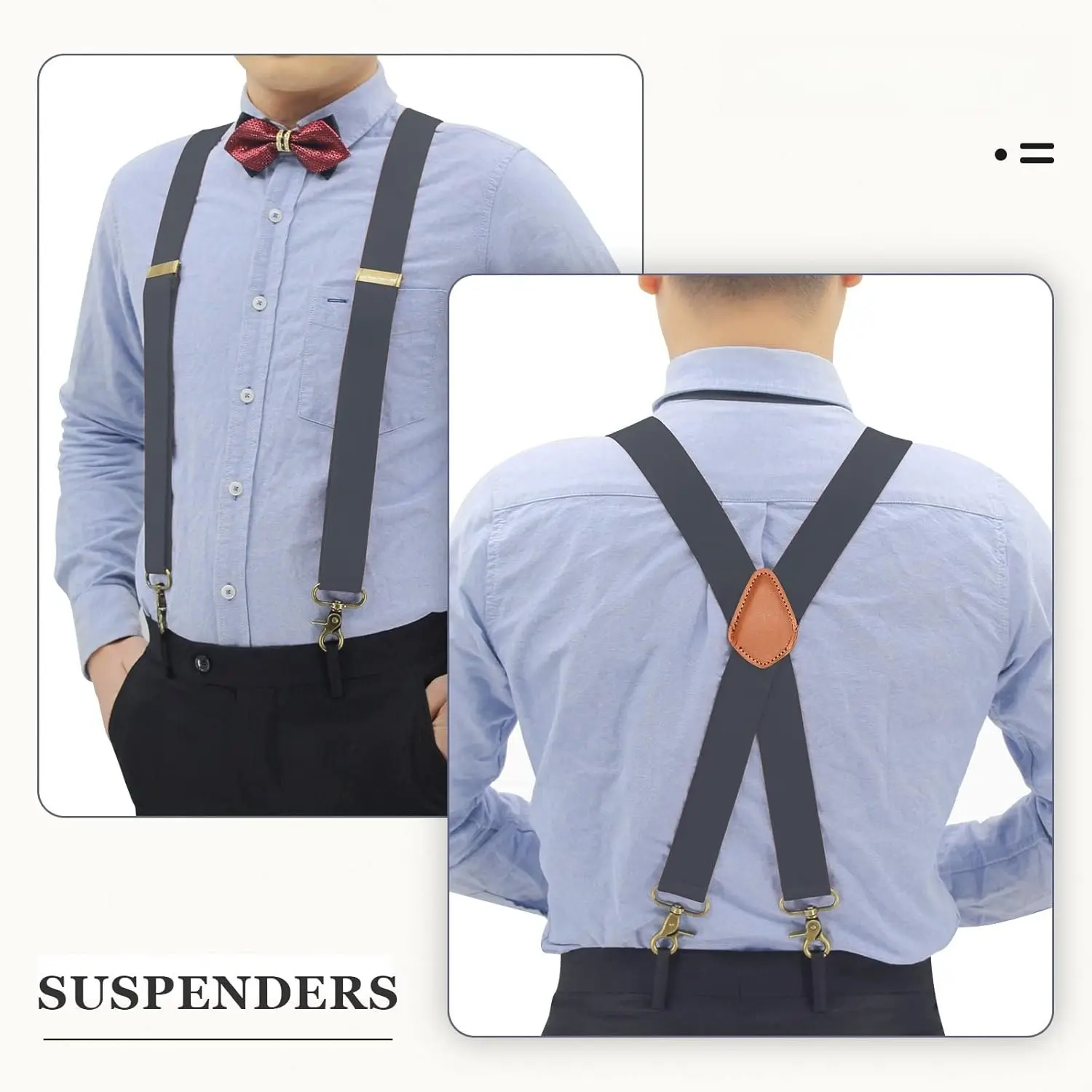 Bronze Swivel Snap Hook Clip-Ends and Hand-Sewn PU Leather Demonstrate Exquisite, Shiny and Durable.With 128 Yarn Double-Woven Soft Webbing, Classic X- Adult Elastic Suspenders are Touched Comfortably.