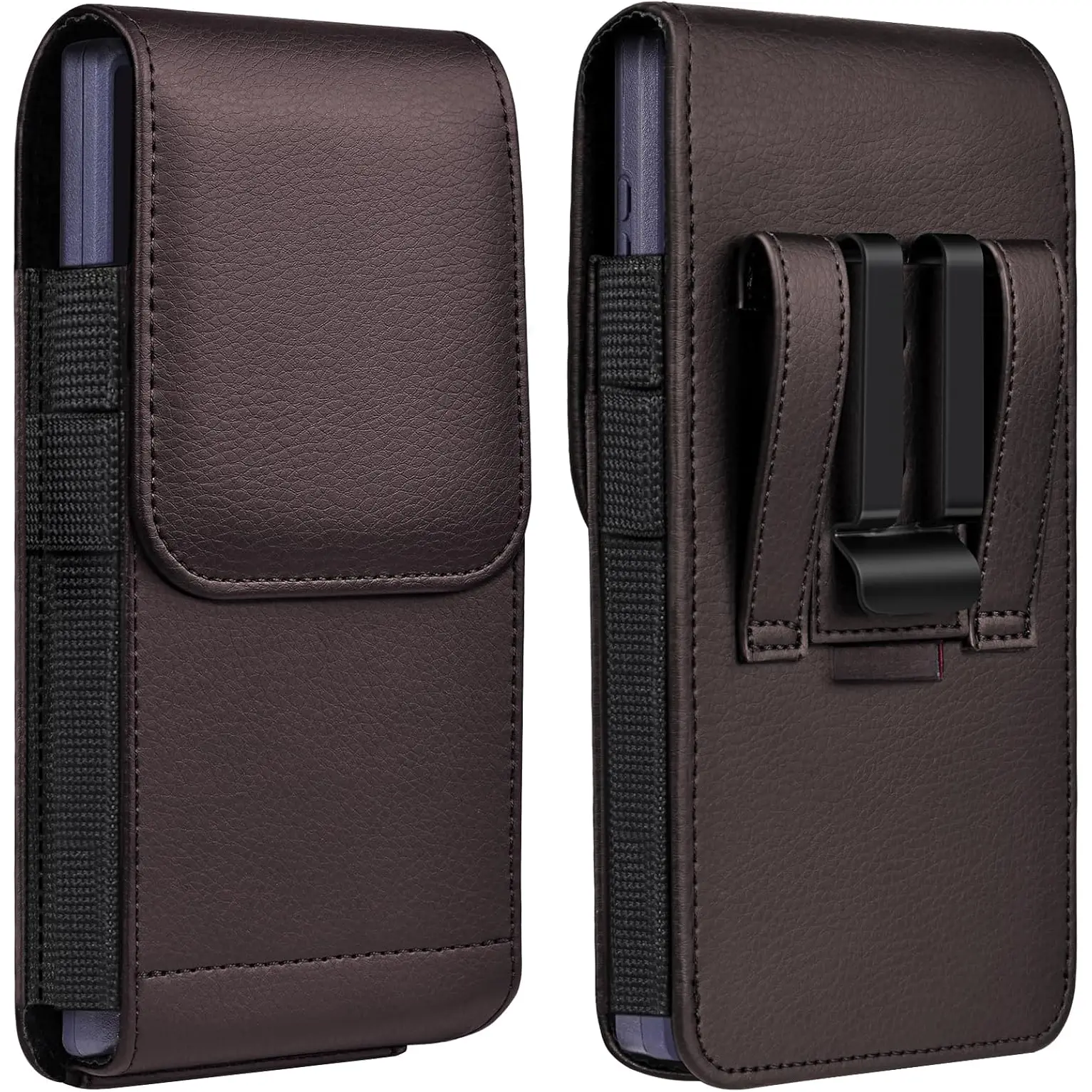 THE WELL KEPT Leather Phone Holster with Metal Belt Clip and Closure Compatible with 16/15/14/13/12 Pro Max, Galaxy S25/S24/S23/S22 Plus & FE, L-Coffee