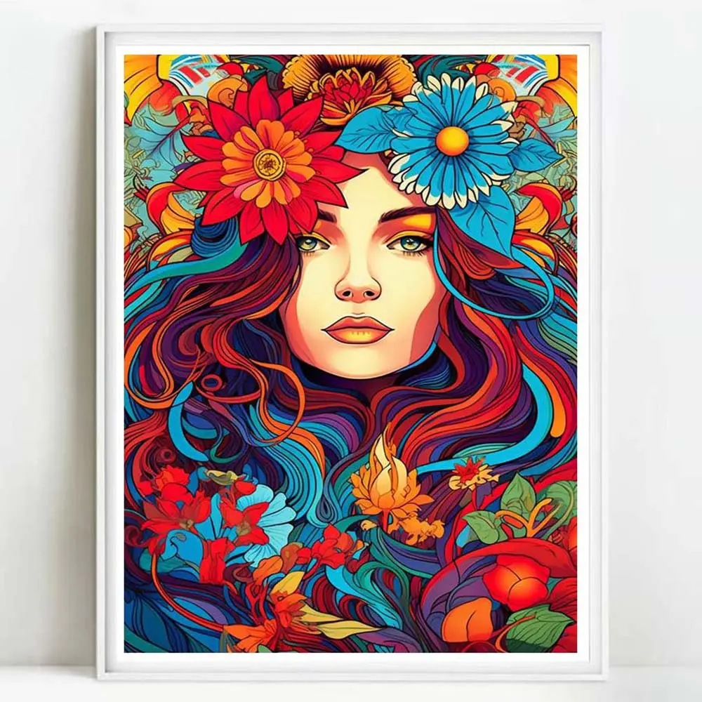 5D Diamond Painting Kit Full Round Drill Flowers, Colors, Waves DIY Mosaic Wall Art, Beginner Craft Set (with Tools), Home Wall Decor Gift, Diamond Art Kit