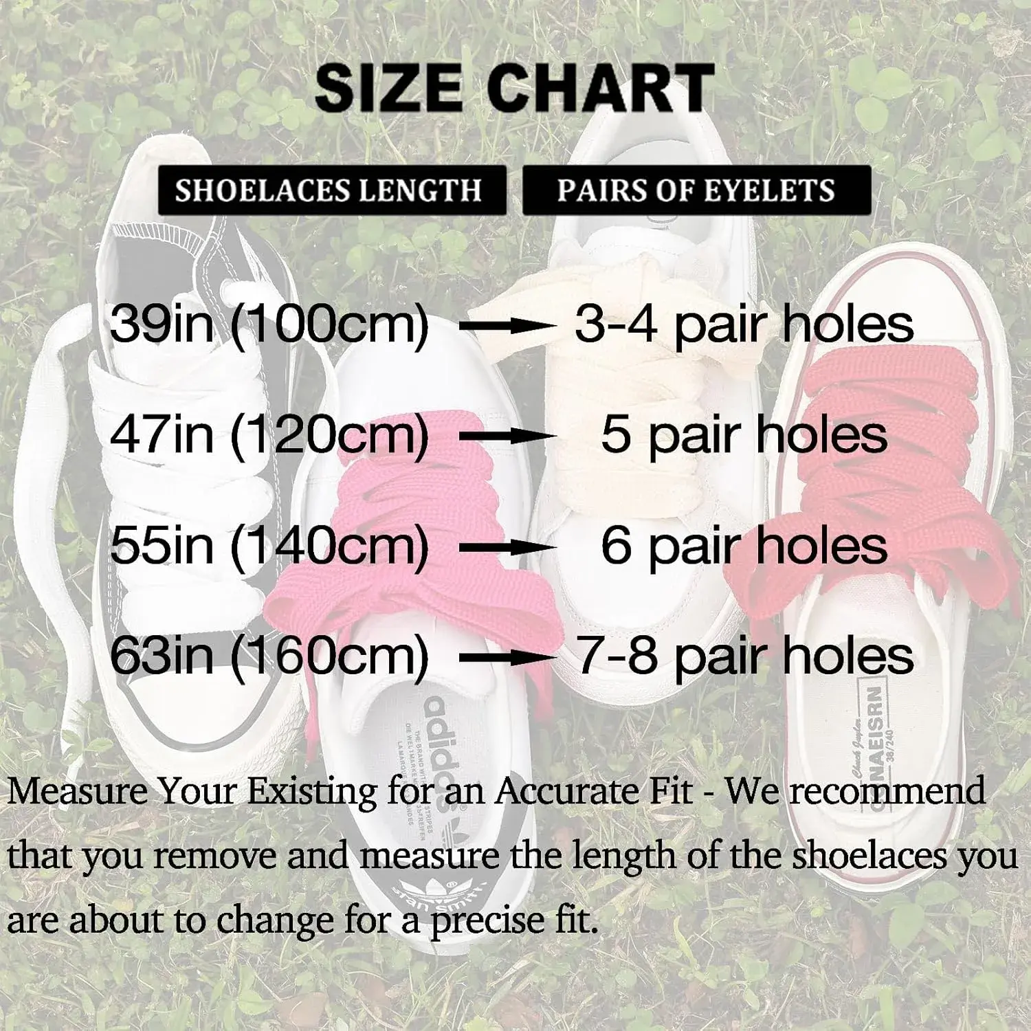 Versatile Sizing: Offering options in 39''(100cm), 47''(120cm), 55''(140cm) and 63''(160cm) lengths, our flat fat shoelaces cater to different shoe styles and sizes.Please check your original shoe strings length before buying