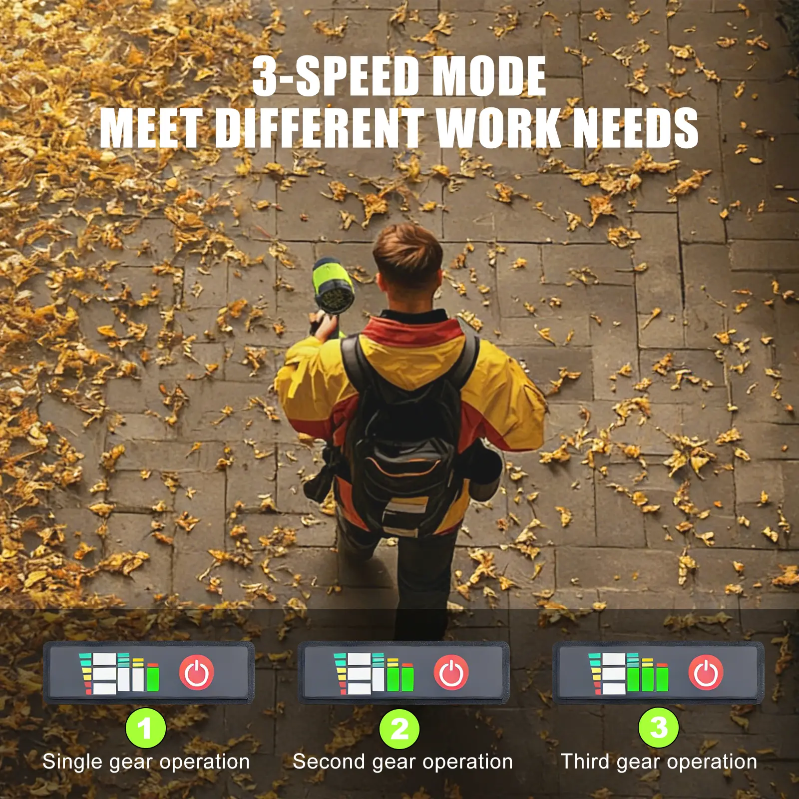Use lower speed for light dust and car interiors, or higher speed for leaves, debris, and light snow.
