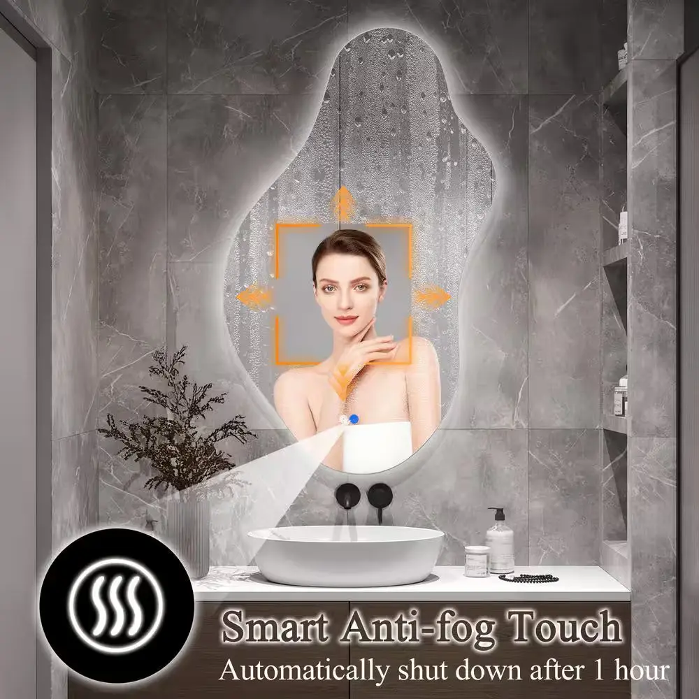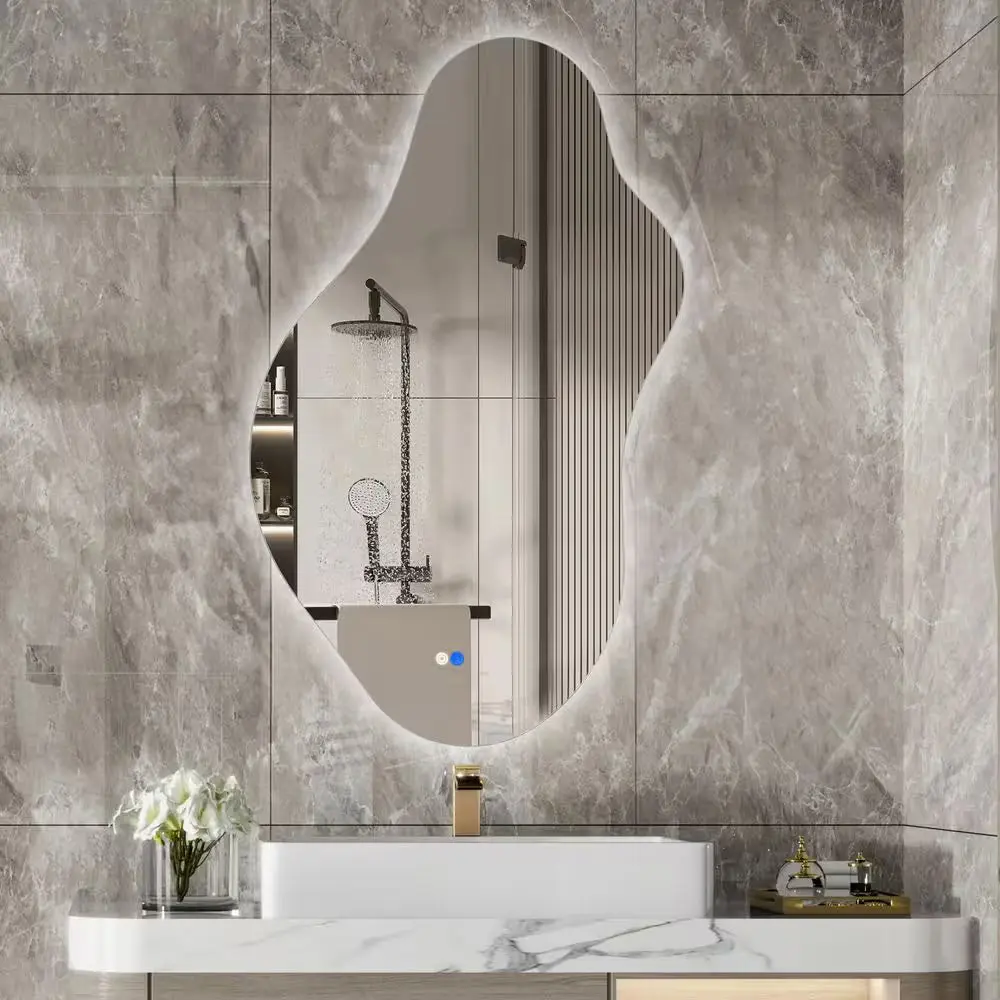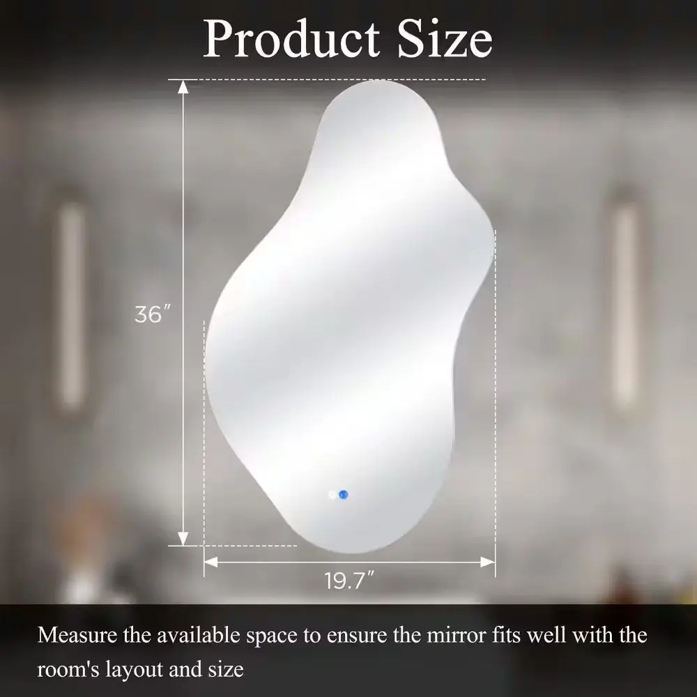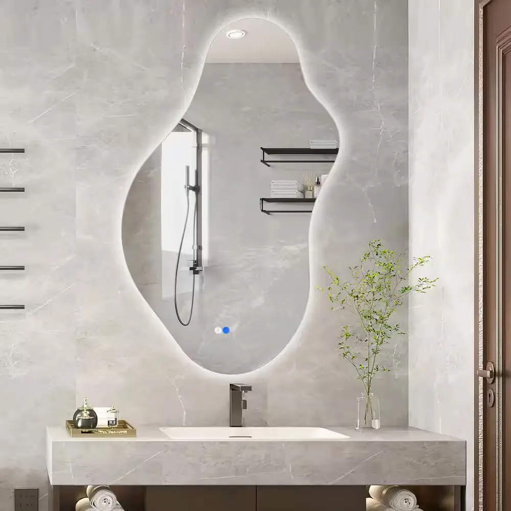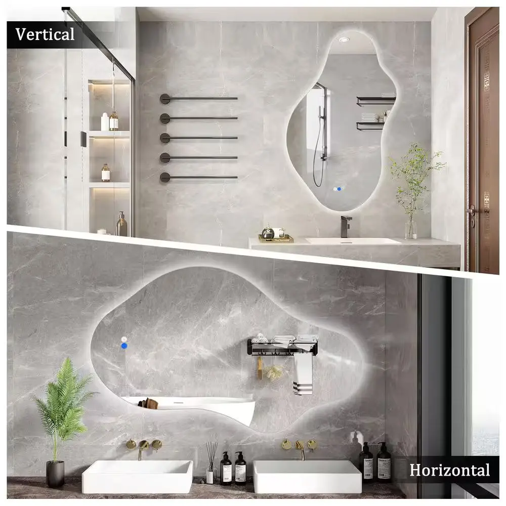 Experience exceptional clarity with zero distortion in this uniquely shaped LED mirror designed to elevate your interiors. Crafted from premium aluminum alloy and a sturdy MDF backboard, it combines durability with sophisticated style. Featuring pre-installed hooks, it offers flexible mounting options—vertically or horizontally—tailored to your space and taste. Available in multiple sizes and finishes, this asymmetrical frameless mirror redefines traditional design, adding both functional light and artistic appeal to any room. Perfect for those seeking a refined and versatile decorative element.