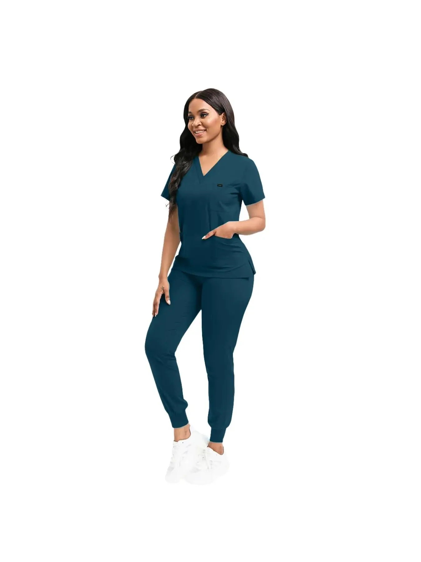 Elastic Quick-Dry V-Neck Two-Piece Scrub Hospital Nurse Uniform Set Beauty Salon Workwear and Operating Outfit Elastic and Slim-Fitting Quick-Dry and Breathable Suitable for Daily Wear in Hospitals Beauty Salons and Operating Rooms