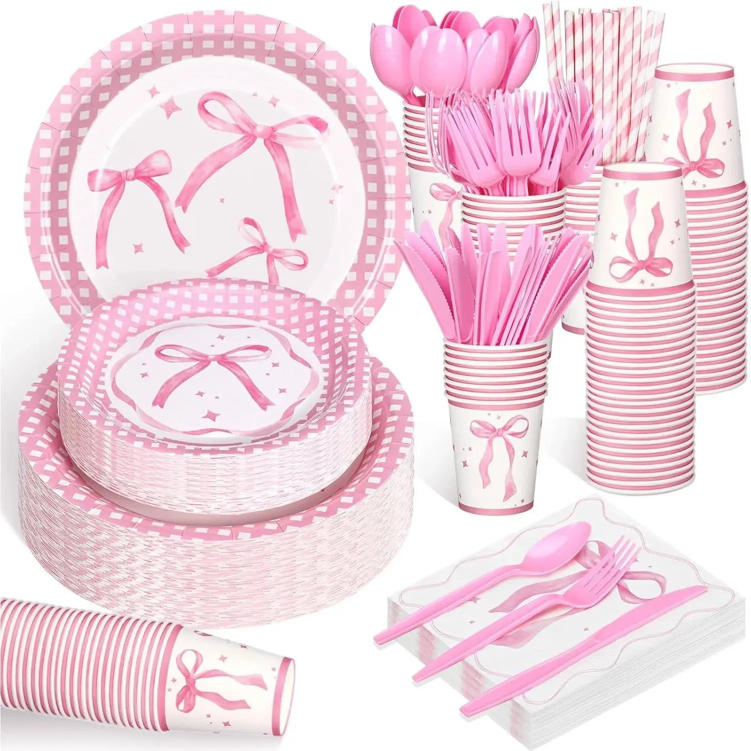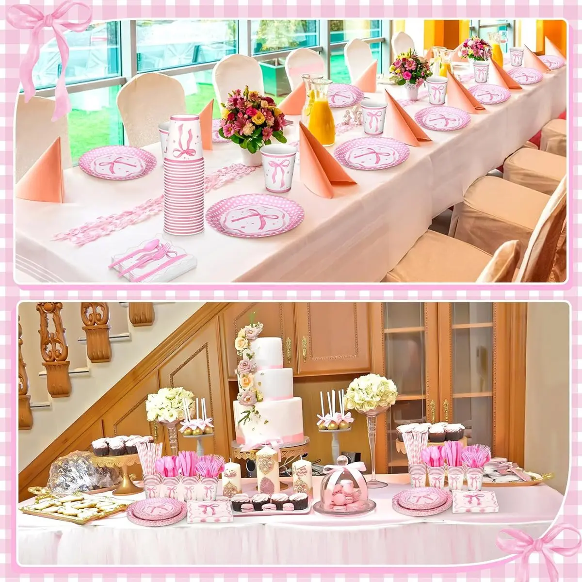 Suitable for All Occasions: whether it is a pink bow party, conquette party, wedding, party decoration, birthday, anniversary, engagement, or bridal shower, Thanksgiving dinner, family dinner, or Valentine's Day party, this bow themed party decorations set can handle it easily; It not only saves your cleanup time, but also adds a touch to your event