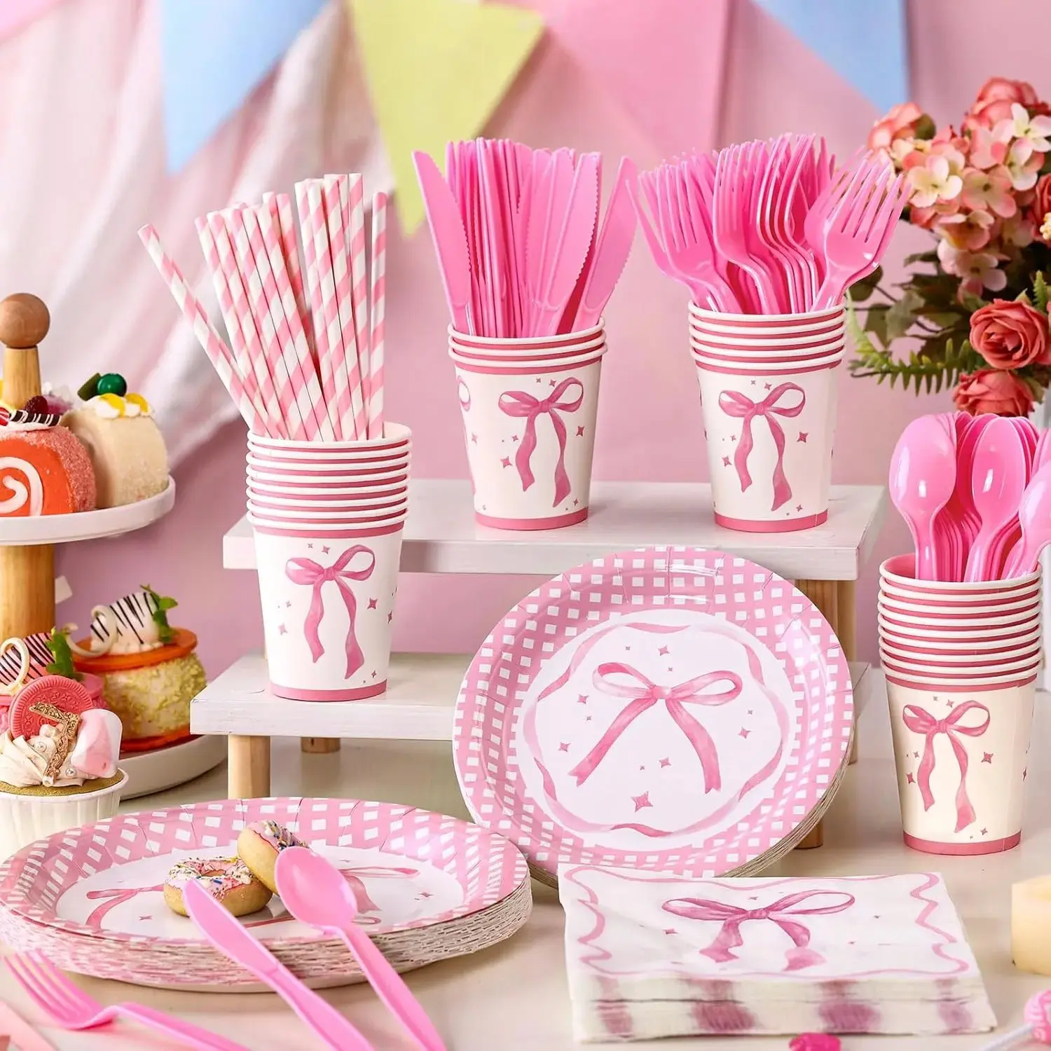 Disposable and Easy to Clean: our bow birthday decorations make cleanup a breeze, after the event, you only need to discard the paper plates, cups and napkins, which will save your cleanup time, giving you more time to enjoy the party;Making it a suitable pink bow decorations for party