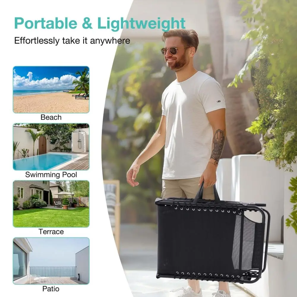 Portable and Versatile: Our foldable pool lounge chair is lightweight, making transportation and storage easy. It's an excellent choice for camping trips, relaxing poolside, extra outdoor seating, or as a front porch napping chair.