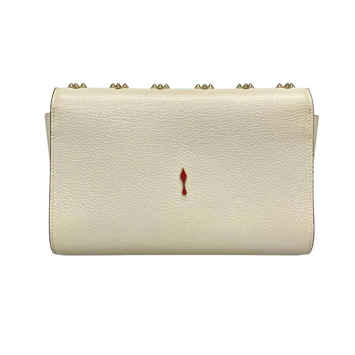 Product Overview This stunning Christian Louboutin Paloma clutch is crafted in elegant "Leche" (cream) grained calfskin leather and features the iconic "Loubinthesky" embellishment. The design is a signature blend of mixed-metal studs, spikes, and the Louboutin logo, creating a sophisticated yet edgy aesthetic. This versatile piece can be carried as a sleek evening clutch or worn as a crossbody thanks to its detachable silver-tone chain strap with a signature red leather shoulder pad. The interior is lined in the brand’s unmistakable red leather and includes multiple card slots and a zippered pocket for organization.
