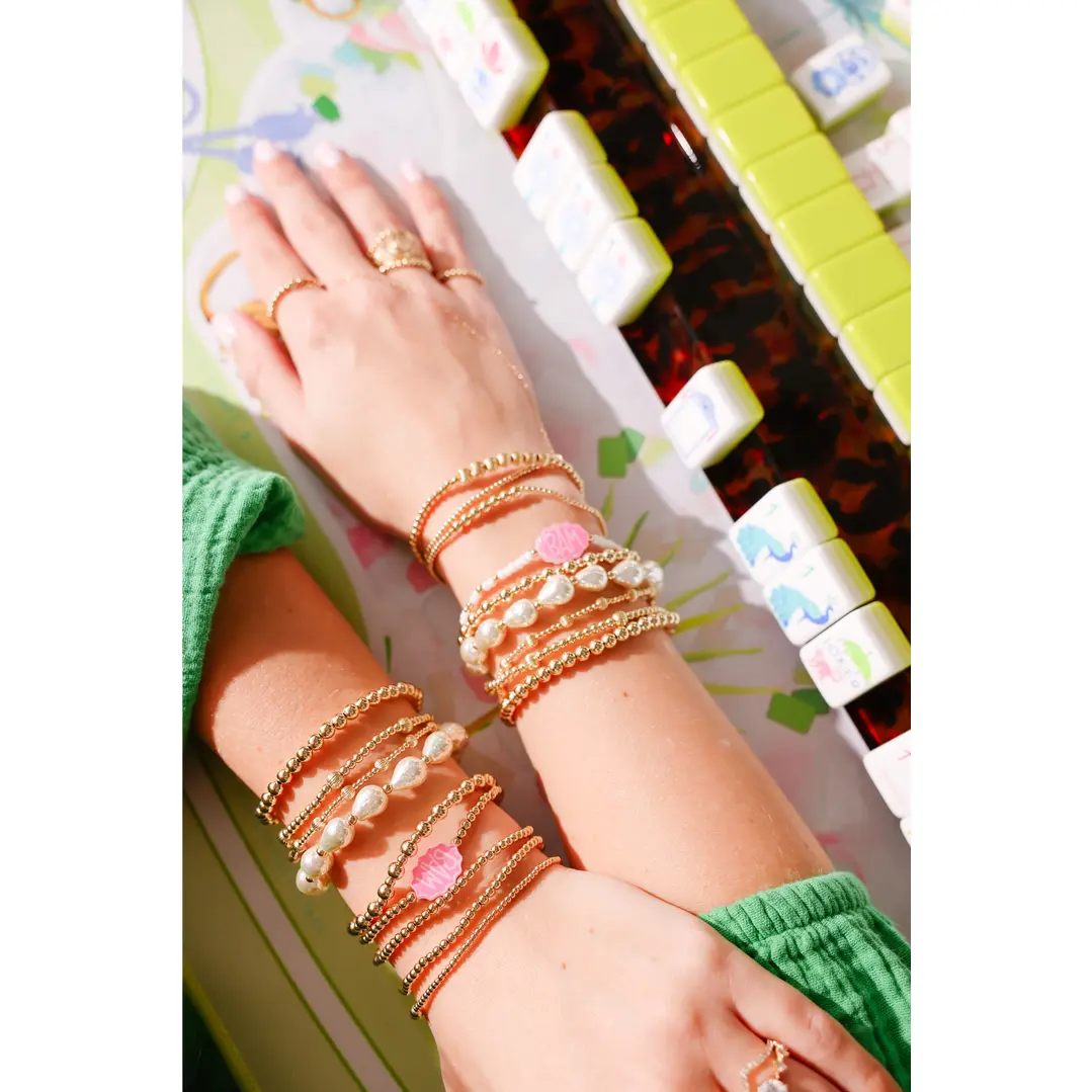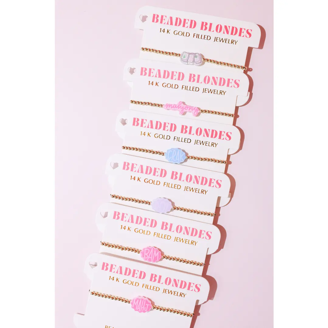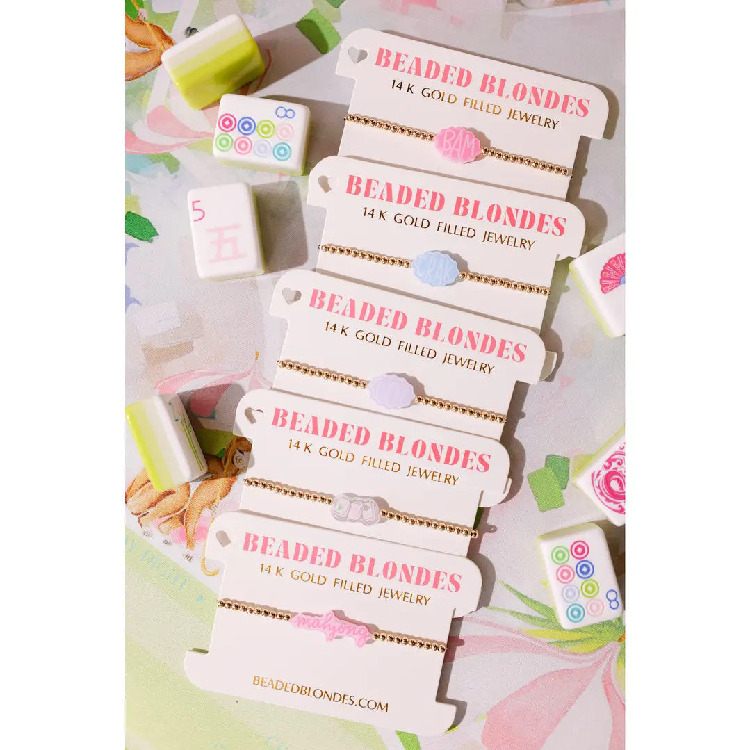 This is a 3MM gold beaded bracelet that features a custom acrylic Mahjong bead — the perfect accessory for game nights or anyone who loves a touch of playful charm! A fun and stylish piece inspired by the classic game. The stretch fit ensures easy, comfortable wear — perfect for stacking or wearing solo. A unique and thoughtful gift for Mahjong lovers and lucky ladies alike.