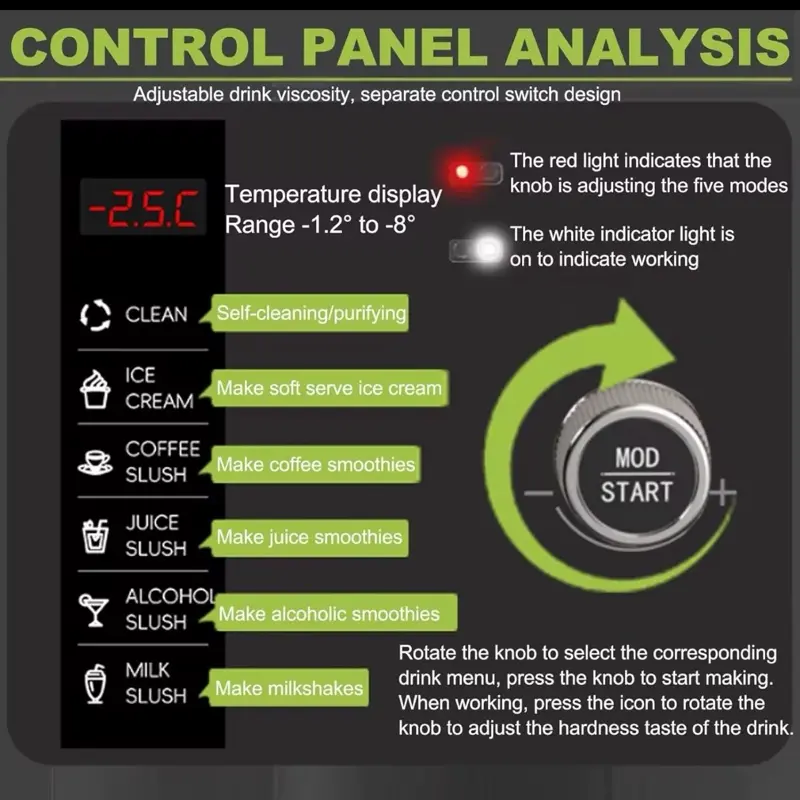 1.Efficient refrigeration ensures continuous ice making, and intelligent temperature control ensures a uniform smoothie texture.