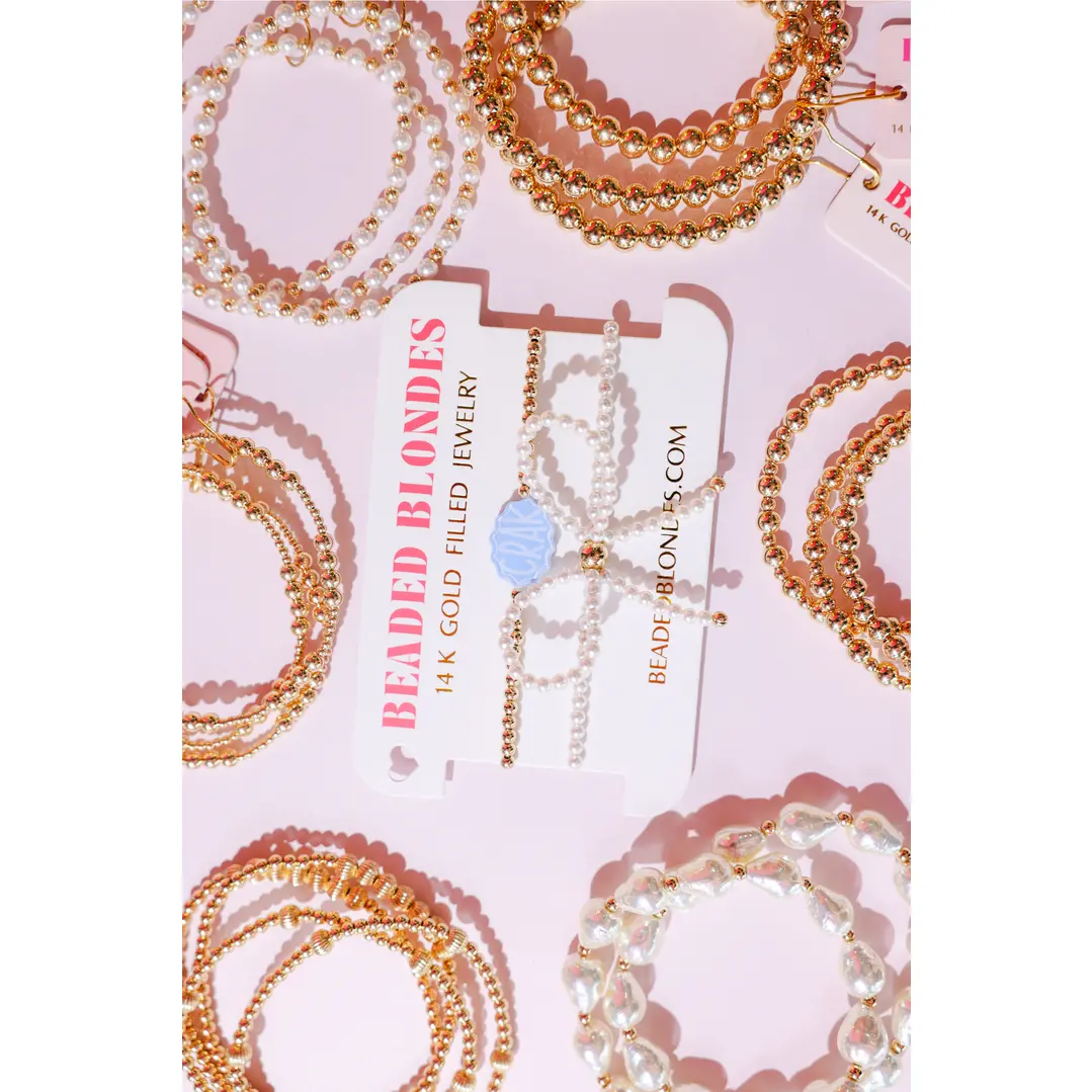 • 14K gold filled & elastic string • Hand-strung in College Station, Texas • Waterproof, workout proof & tarnish proof