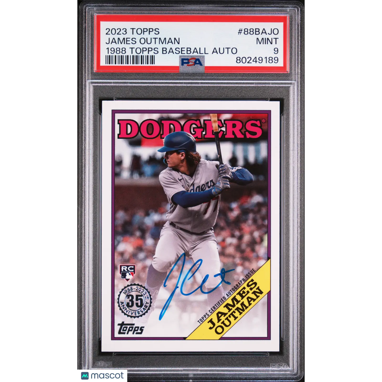 You are purchasing the following: 2023 Topps 1988 Topps Baseball Autographs James Outman Rookie #88BAJO PSA 9 Los Angeles Dodgers.