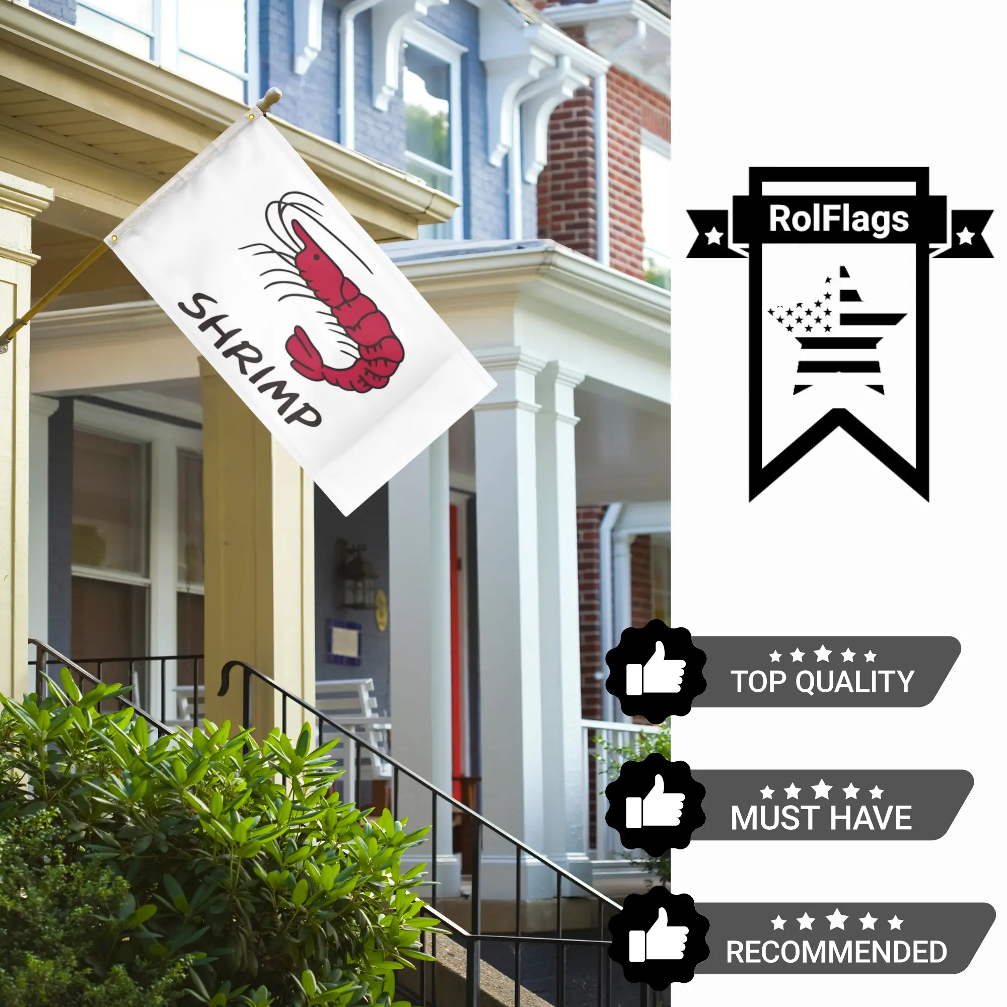 Shrimp White 3'X5' Flag 100D Polyester (90cm x 150cm) Restaurant Business Flag (B3) RolFlags