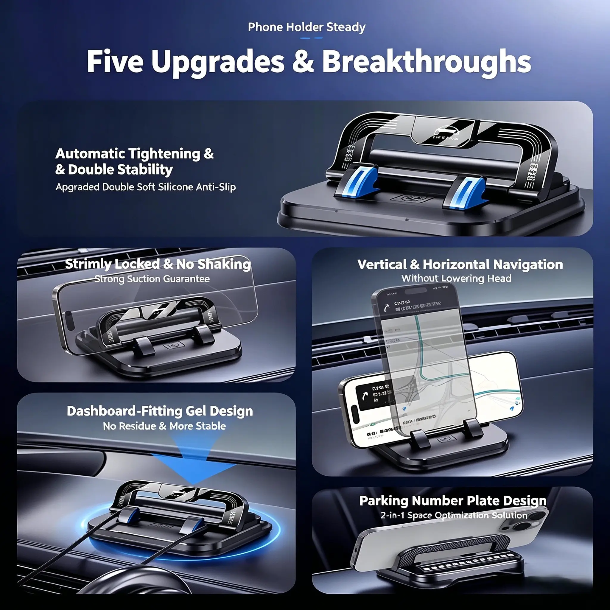 【Two-in-One Design】: Combines phone holder and parking sign, optimizing interior space efficiently.