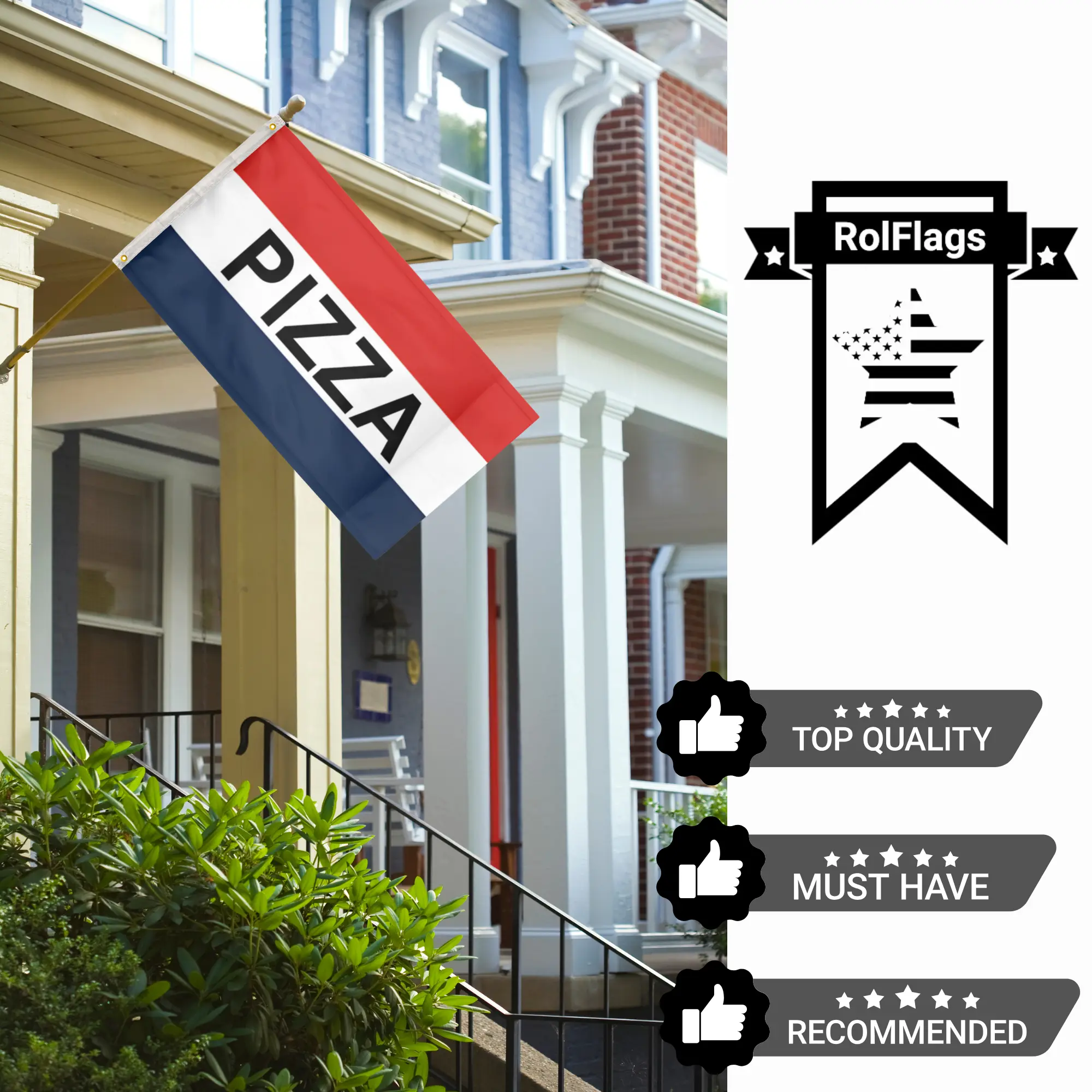 Pizza Red White Blue 3'X5' Flag 100D Polyester (90cm x 150cm) Restaurant Business Flag (B8) RolFlags
