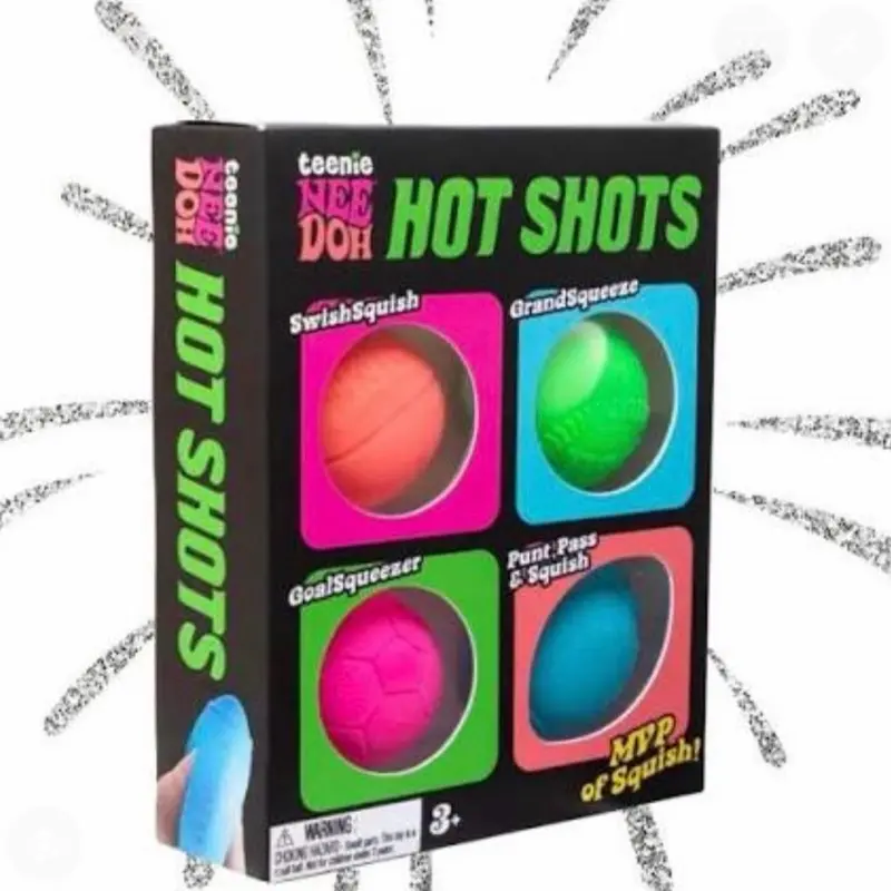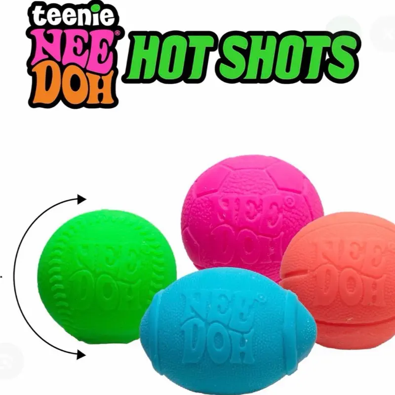 Needoh HOT SHOTS TEENIE MINI BALLS 4 Pack -Schylling NeeDoh SPORTS Sensory Stress Relief Squishy Fidget SQUEEZE BALL