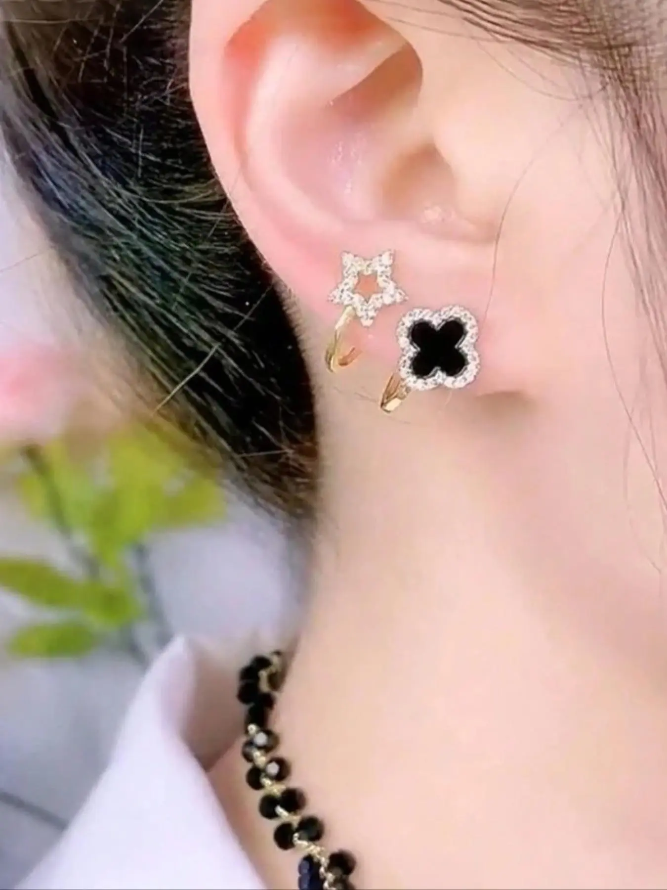 5. Star Four-Leaf Flower Earrings, Asymmetrical Design for Women, Unique Daily Wear Jewelry, Fashionable Ear Studs for Everyday Use