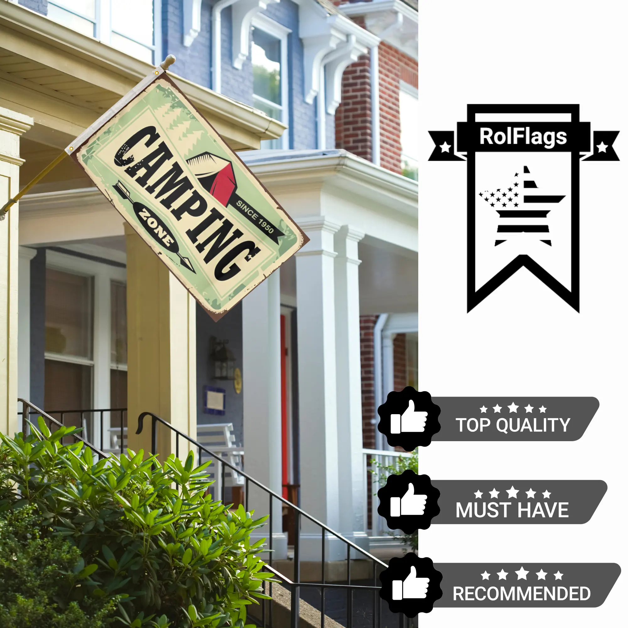 Camping Zone 3'X5' Flag 100D Polyester (90cm x 150cm) Business Flag (B19) RolFlags