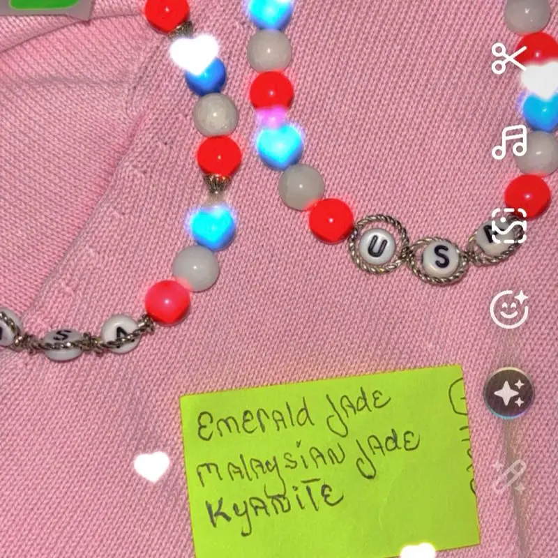 Hippy Dave Emerald Jade Kyanite Malaysian Jade Stones Bracelet with Red White Blue Beads USA Charms Handcrafted Jewelry