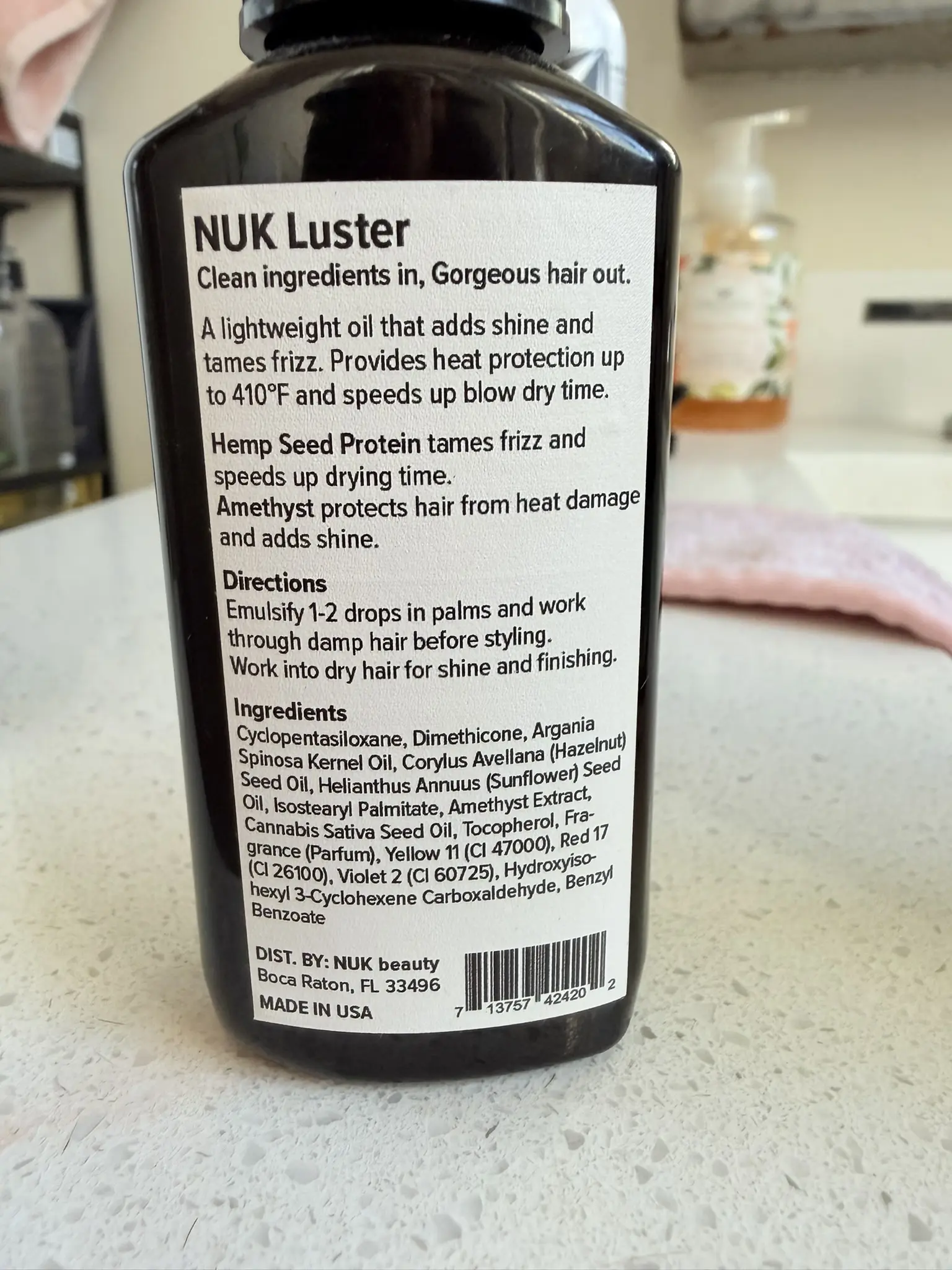 Instant shine. Zero weight.NUK Beauty Luster Oil smooths frizz, boosts shine, and speeds up your blow-dry — leaving hair silky, polished, and touchable.NUK LUSTER amethyst oil