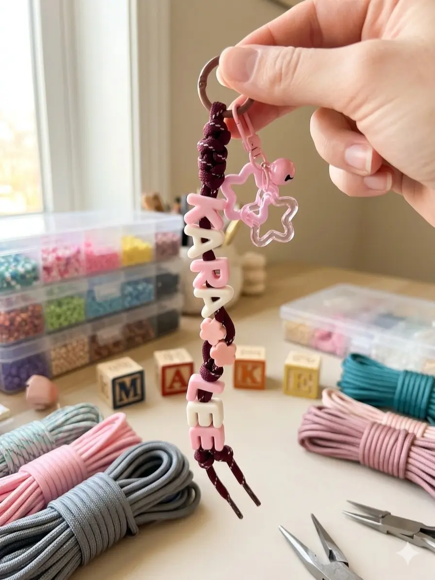 Shine bright with our Custom Name Keyring with Star Charm This stylish accessory features colorful, high-quality letter beads personalized with your chosen name, paired with a charming star accent that adds a touch of sparkle and personality. Each keyring is carefully handmade, making every piece unique and crafted with attention to detail.