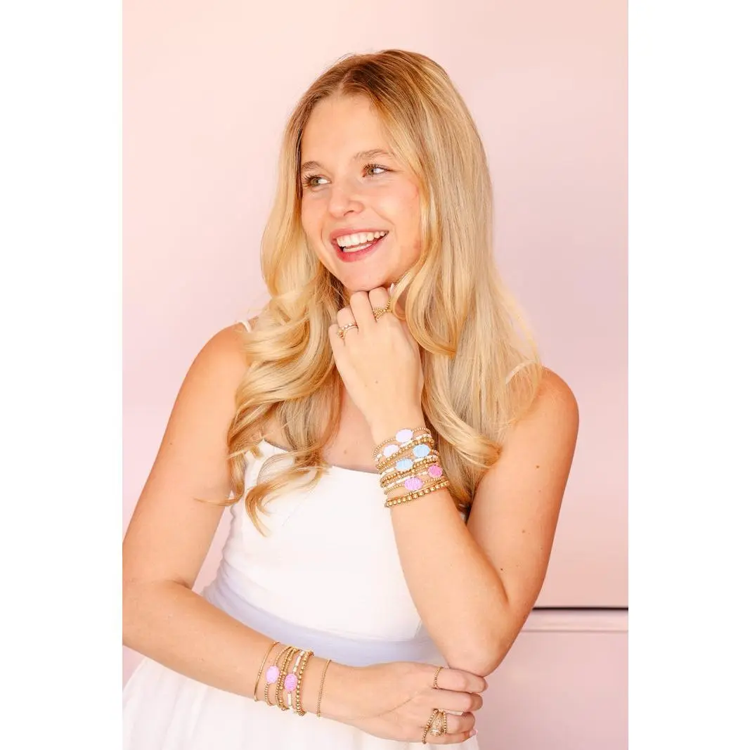 • 14K gold filled & elastic string • Hand-strung in College Station, Texas • Waterproof, workout proof & tarnish proof