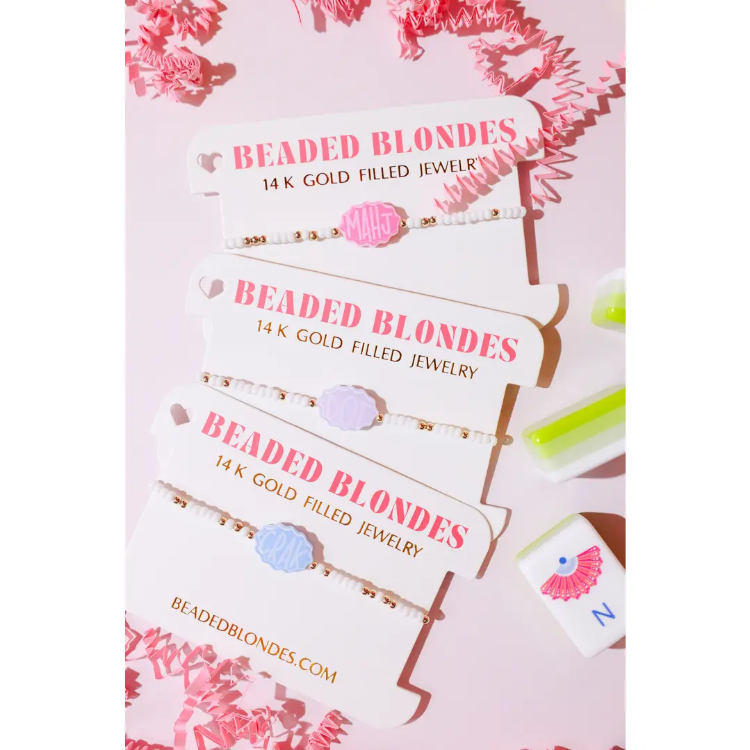 This is a colorful beaded bracelet that features a custom acrylic Mahjong bead — the perfect accessory for game nights or anyone who loves a touch of playful charm! A fun and stylish piece inspired by the classic game. The stretch fit ensures easy, comfortable wear — perfect for stacking or wearing solo. A unique and thoughtful gift for Mahjong lovers and lucky ladies alike.