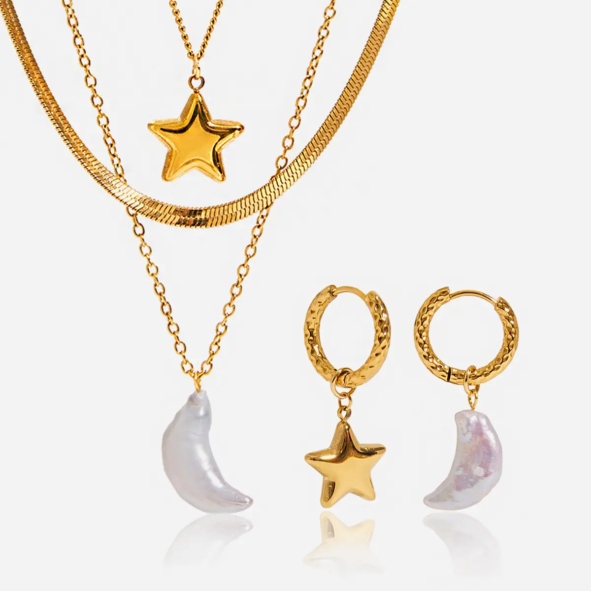 1 x Matching Earrings: Elegant drops with moon/star charms and genuine pearls.