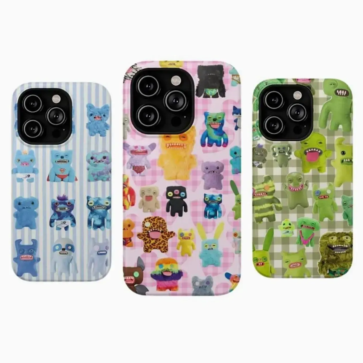 Fuggler Colorful Monsters Collection Striped Gingham Patchwork Pastel Quirky Graphic Art Trendy Tough Phone Case. Weirdcore Aesthetic Heavy Duty Shockproof Protective Smartphone Cover for iPhone 17 Pro Max 16 Air 15 14 13 12 11.