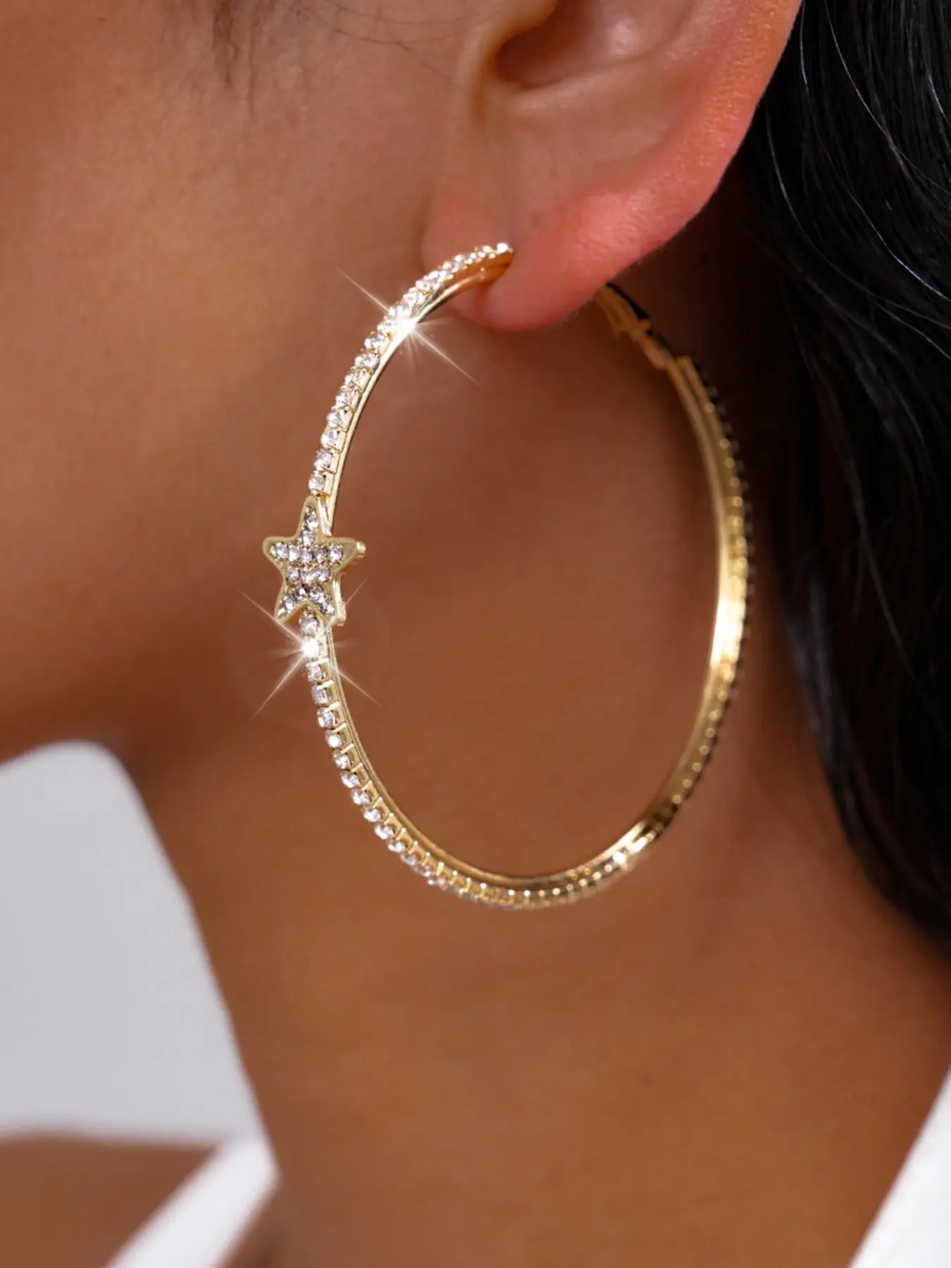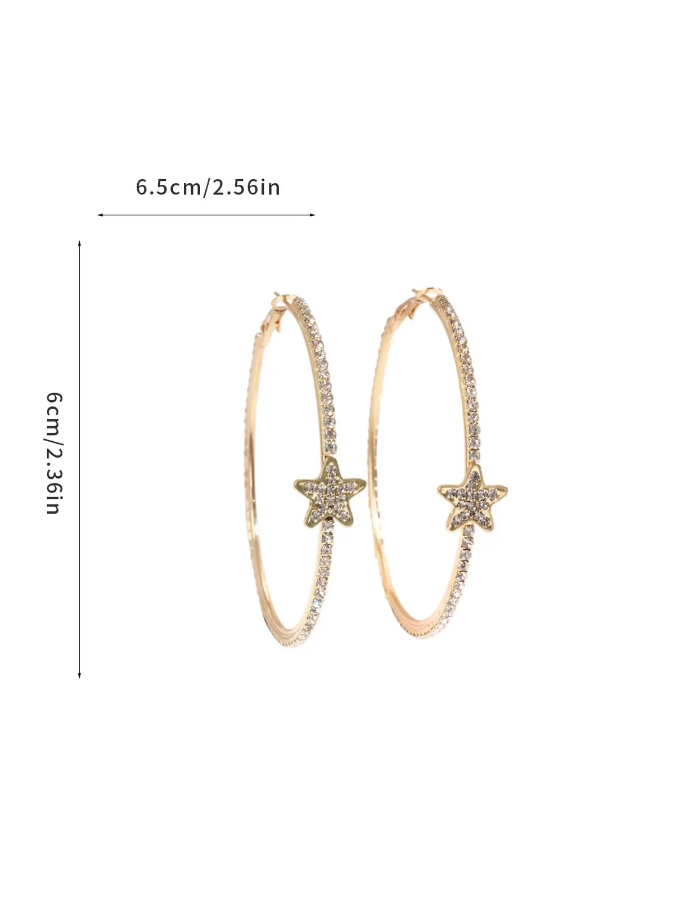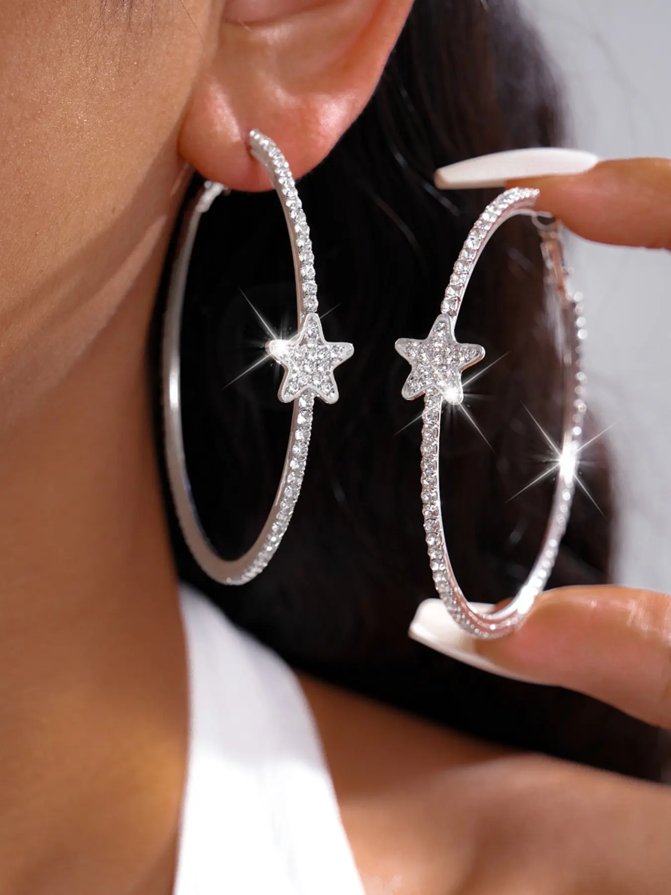Silver Color Rhinestone Star Round Earrings for Women, Fashion Jewelry, Perfect Gift for Her, Elegant and Stylish Accessories