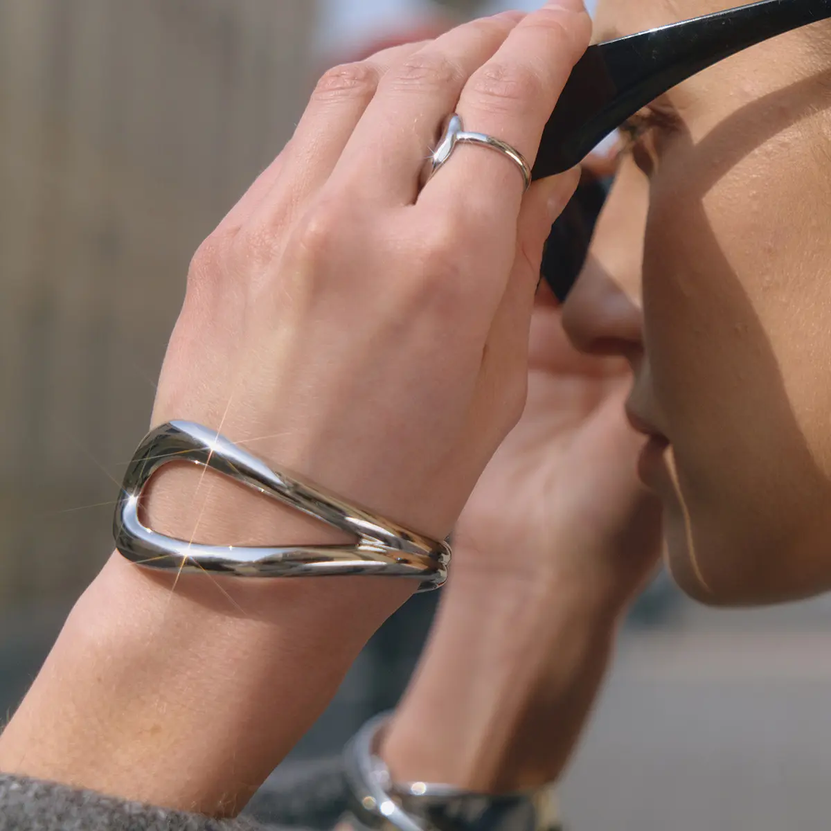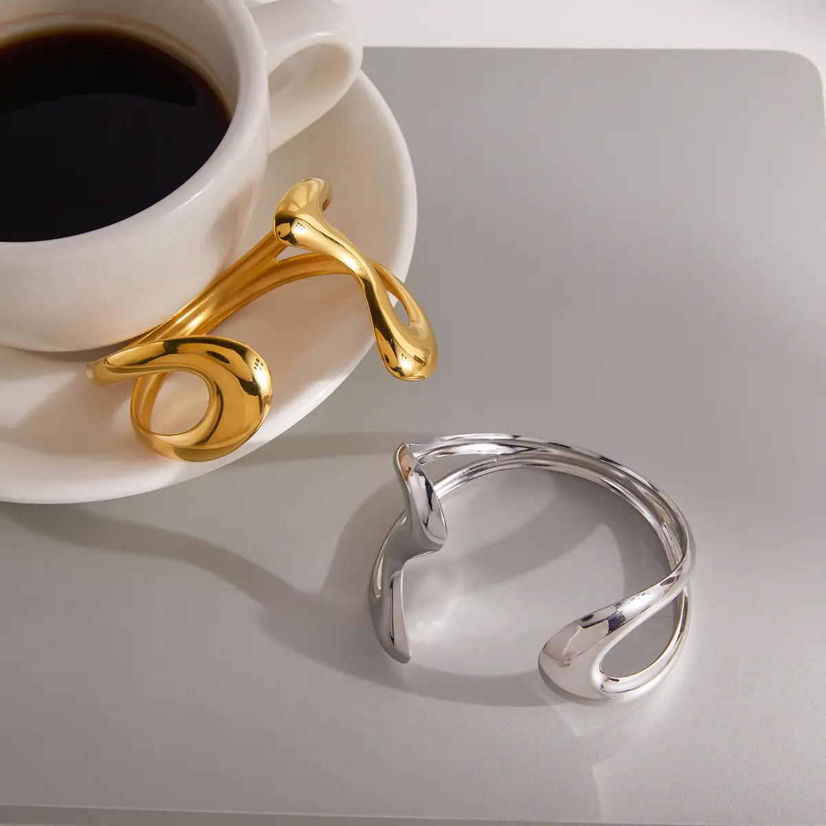 Embrace the beauty of movement with our Double-Layer Wave Bangle. Featuring a unique, fluid-line design that mimics the rhythmic flow of ocean waves, this piece offers a sophisticated, layered look in a single, effortless accessory.