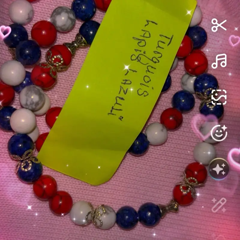 Turquoise Stones Bracelet with Red White Blue Beads USA Charms Handcrafted Jewelry for Women