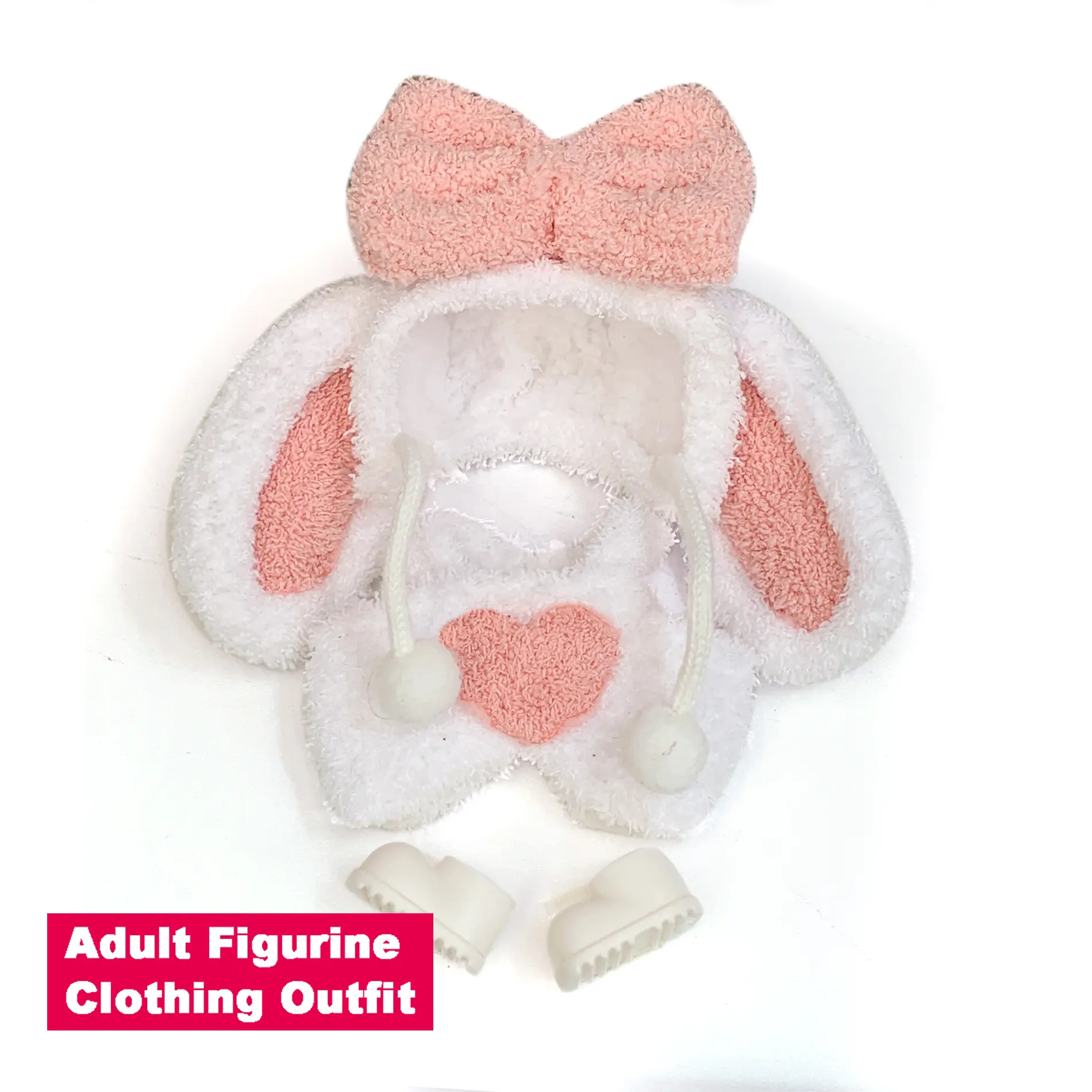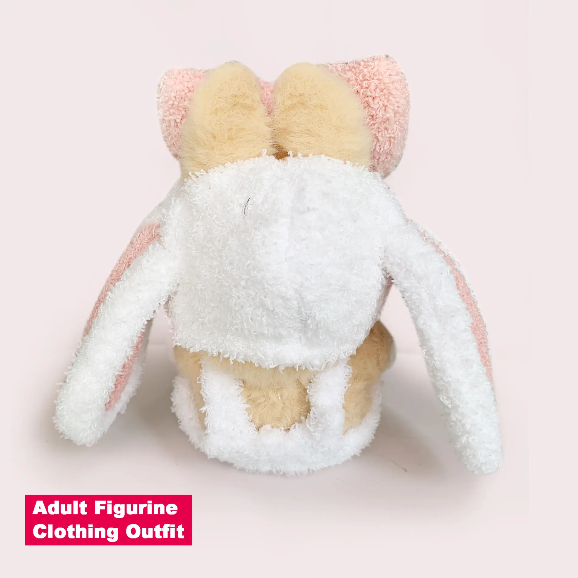 Pastel Pink & White Bunny Floppy Ear Outfit for Plush Collectible Figurines, Ultra-Soft Hooded Costume, Cute Aesthetic Accessory for Adult Collectible Shelf Styling