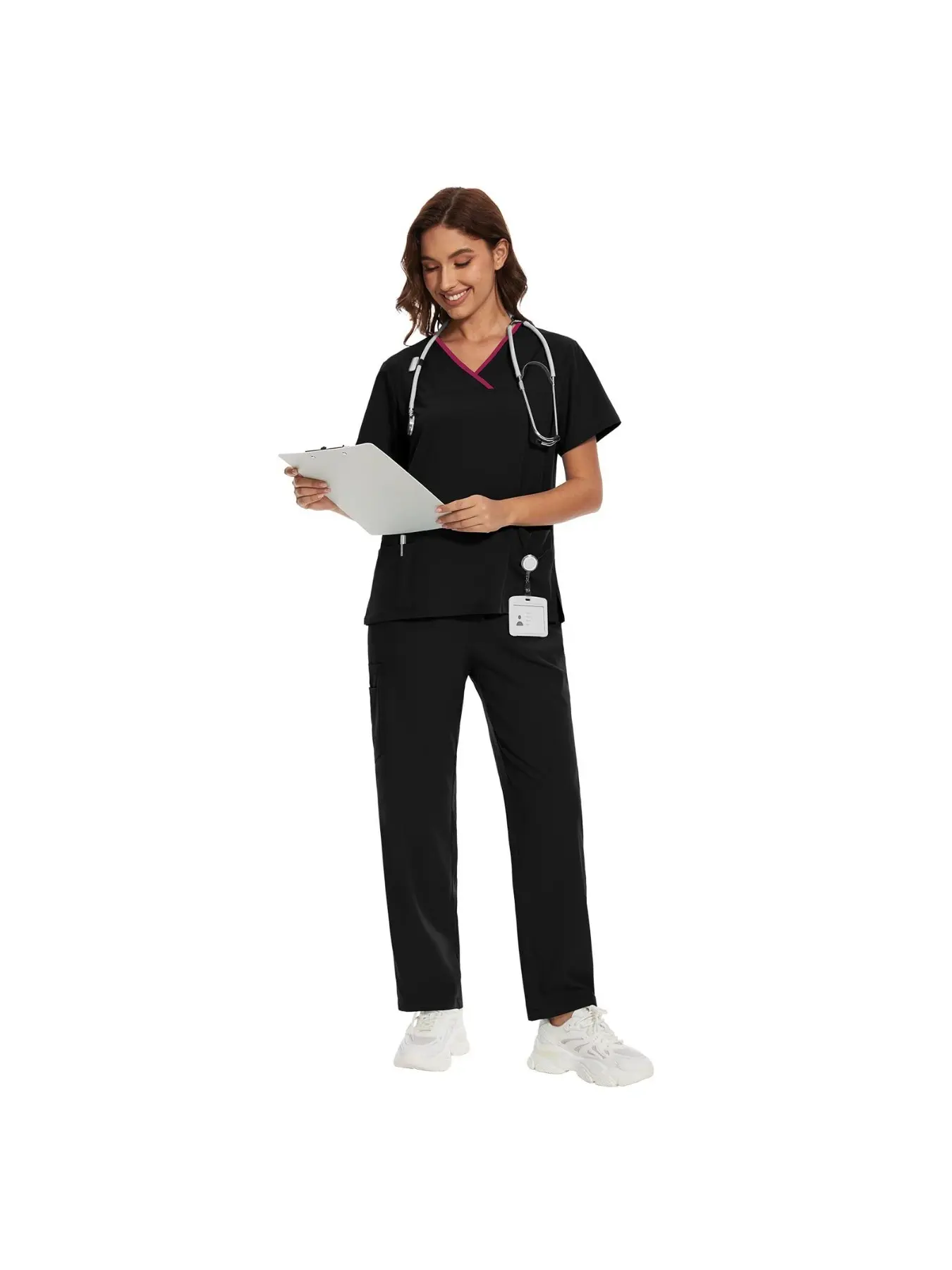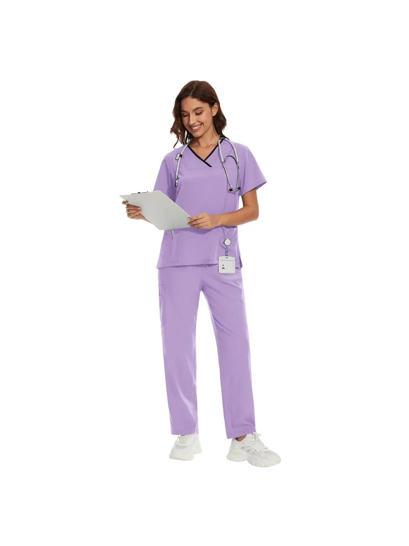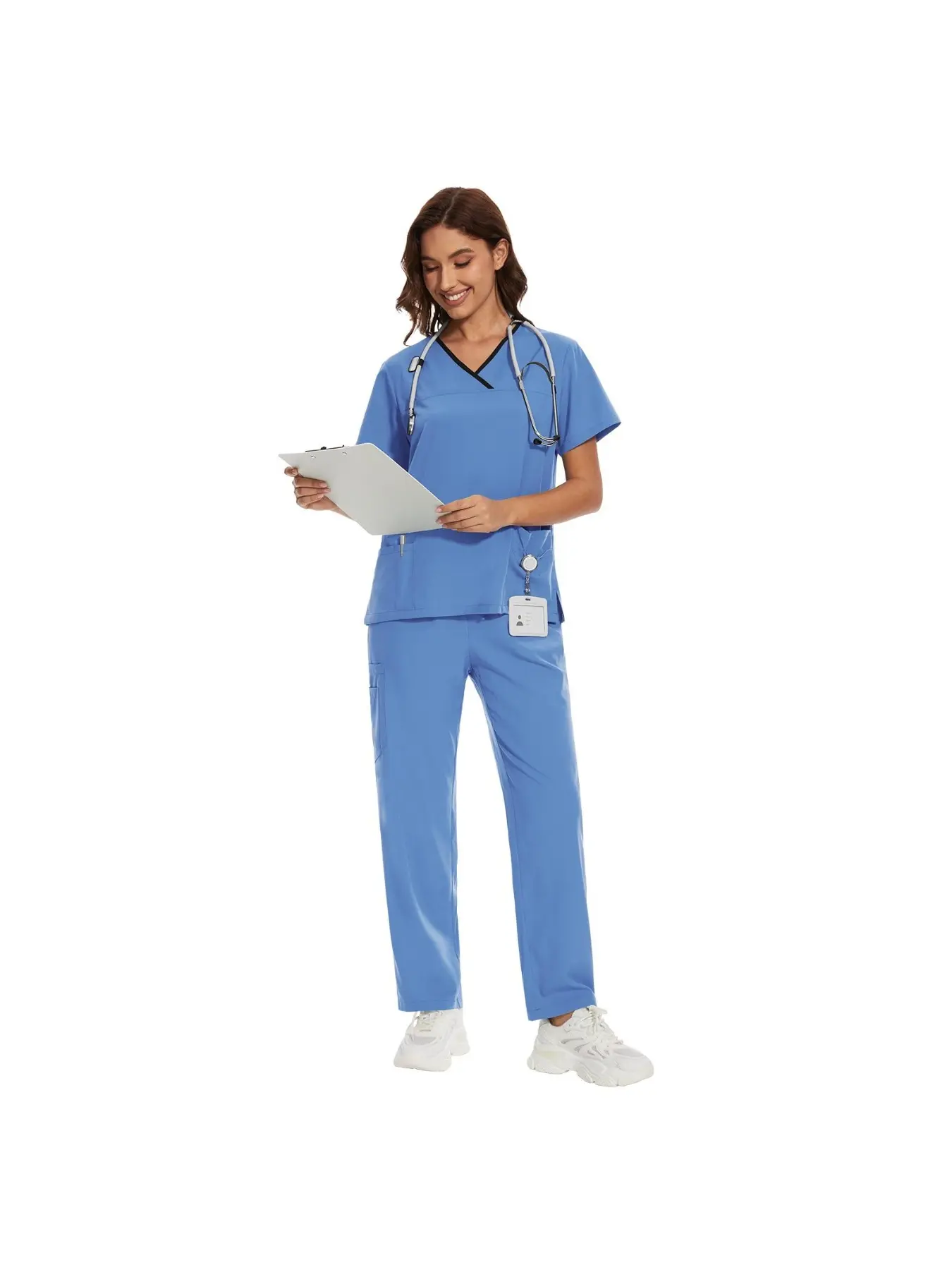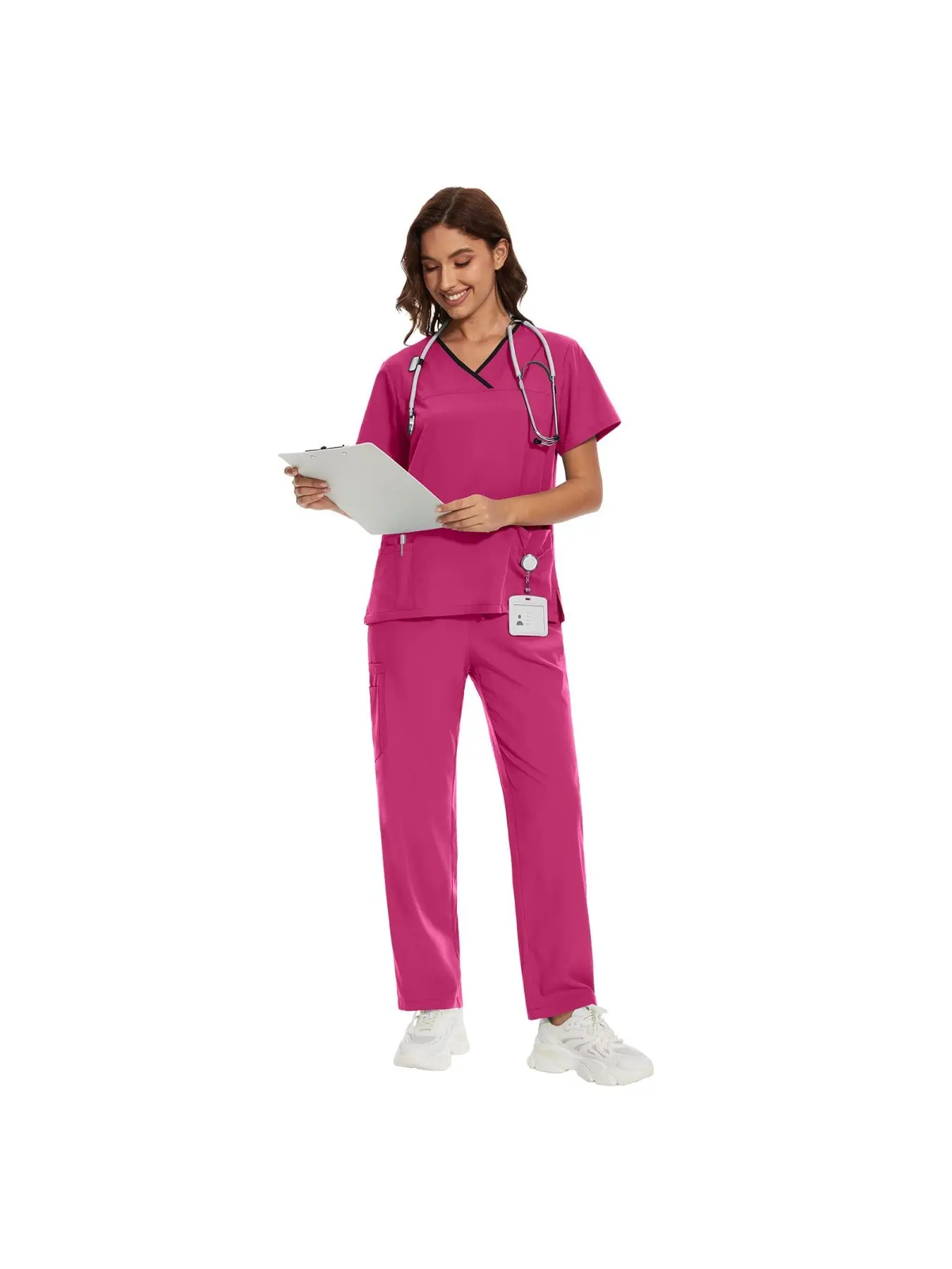 Women's V-Neck Scrub Set, 2-Piece Stretch Uniform with Jogger Pants, Multi-Pocket Breathable Workwear for Nurses Doctors, Multiple Colors Available