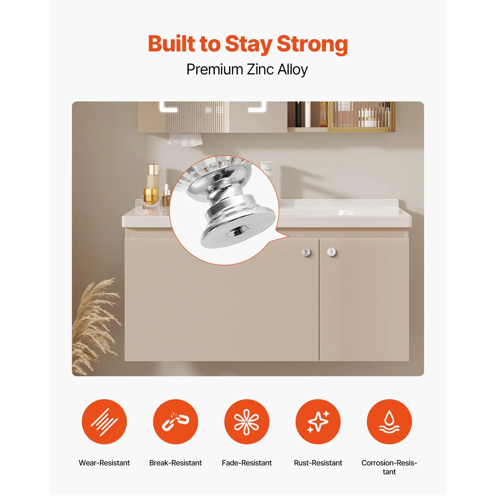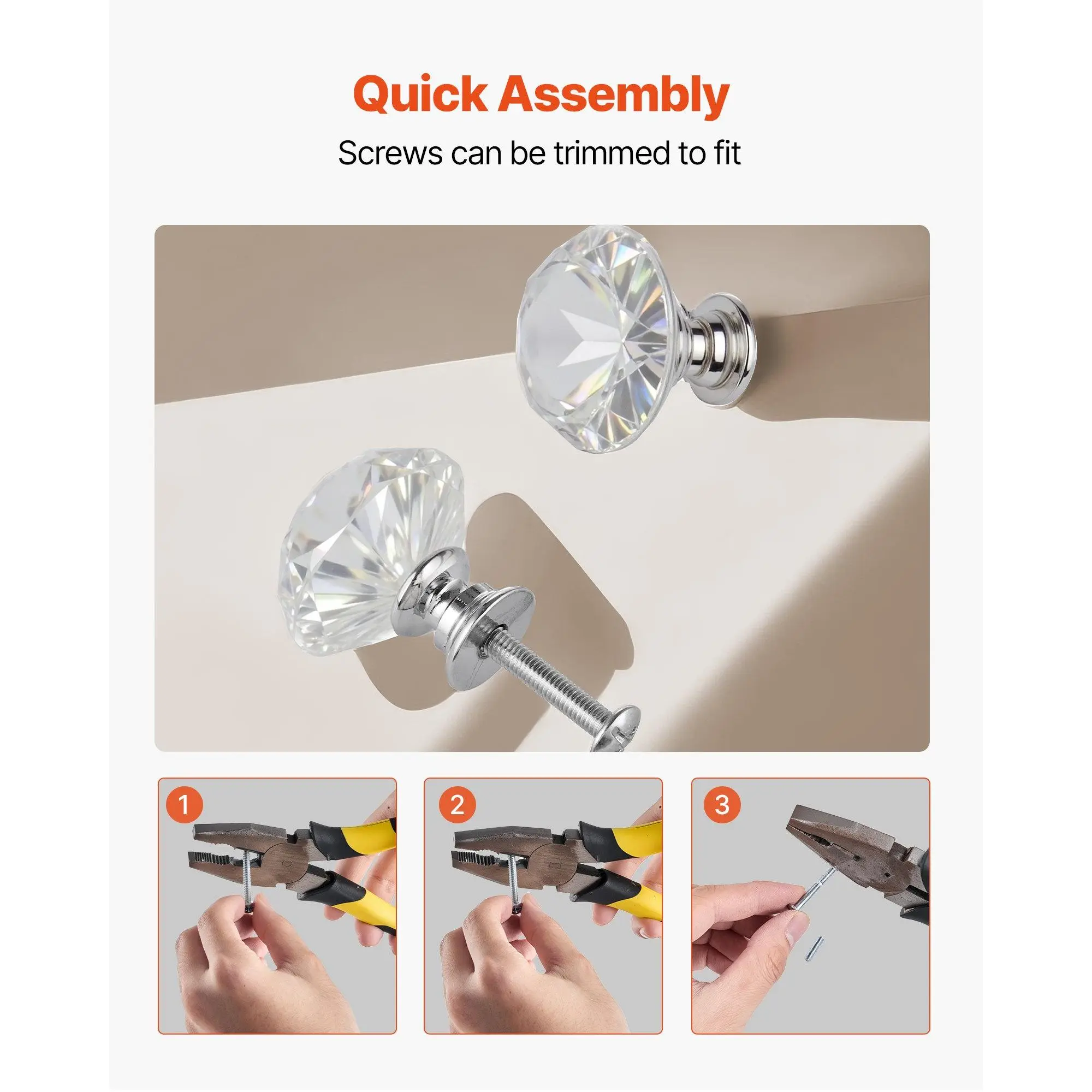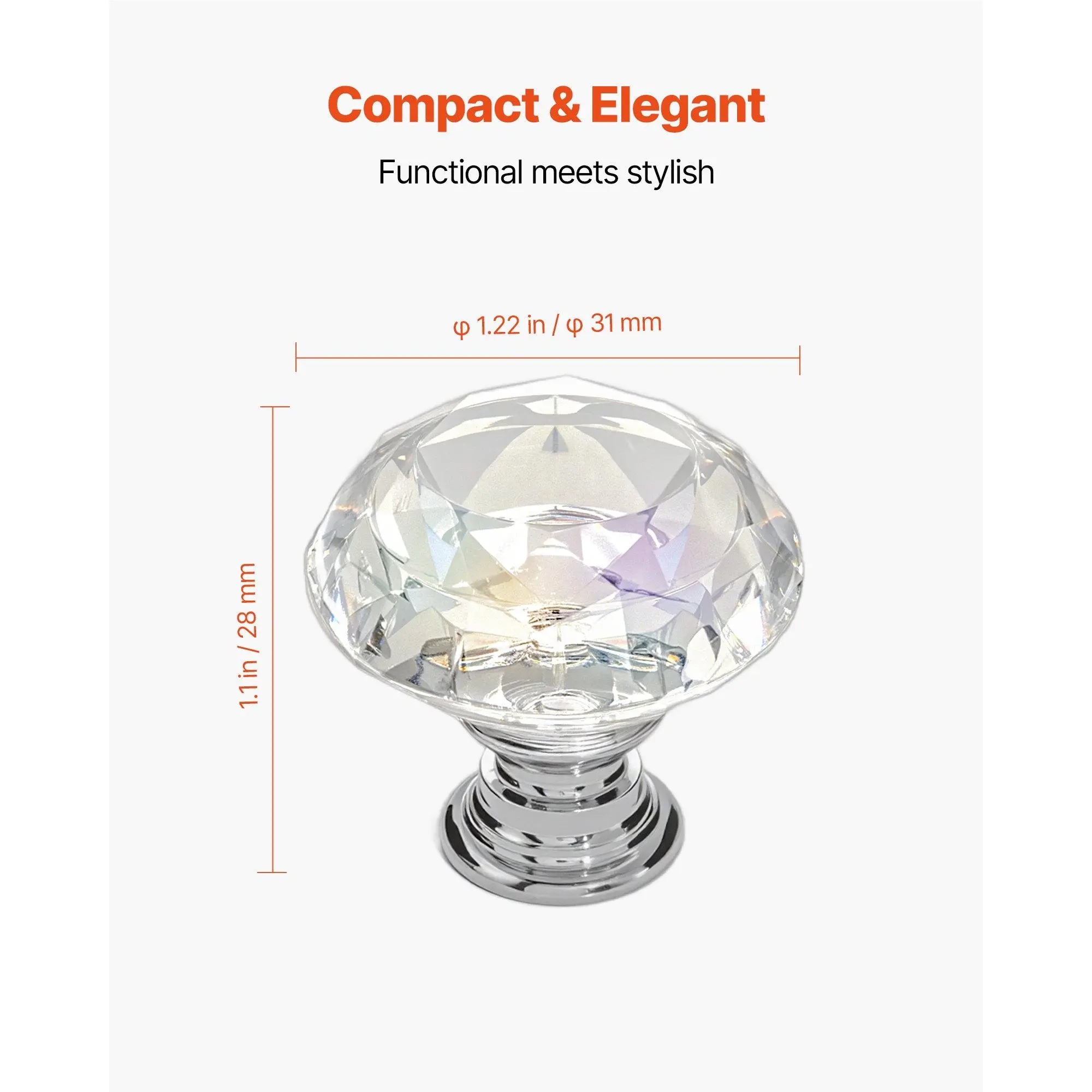 VEVOR Cabinet Knobs, 12 Pack, 1.22 Inch Acrylic Zinc Alloy Drawer Pulls Door Handles, Diamond Kitchen Solid Knobs Dresser Handles, Cupboard Hardware with Screws for Bathroom Closet Cabinets Drawers