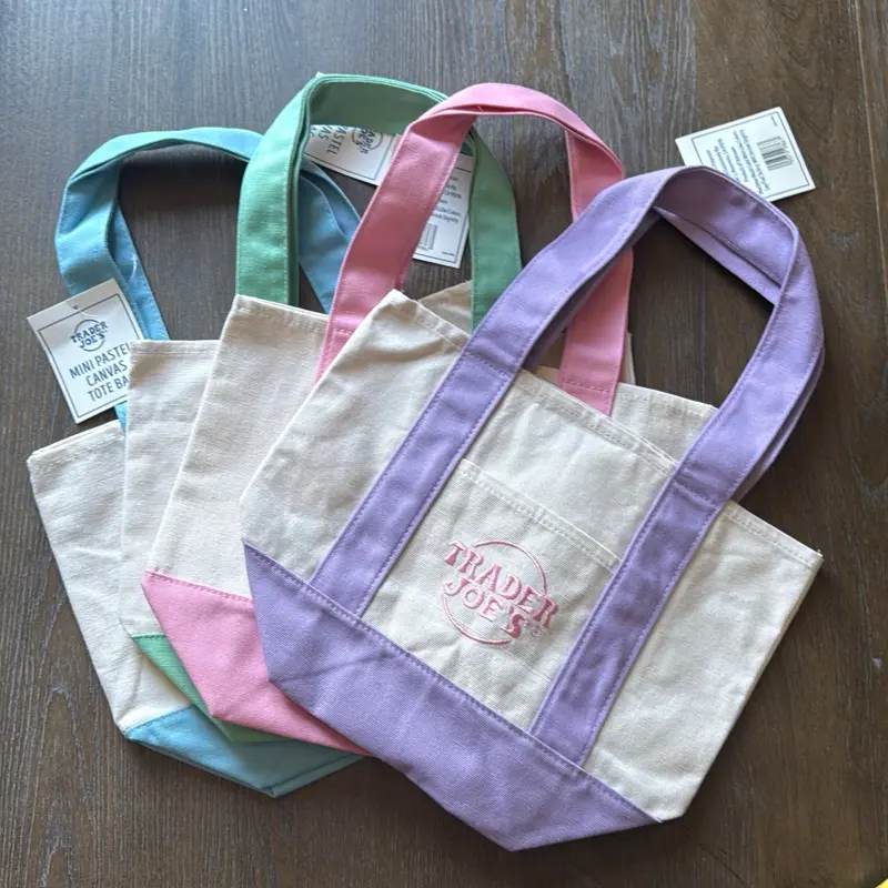 Trader Joe's Mini Pastel Canvas Tote Bag - Lightweight and Durable Design for Everyday Use