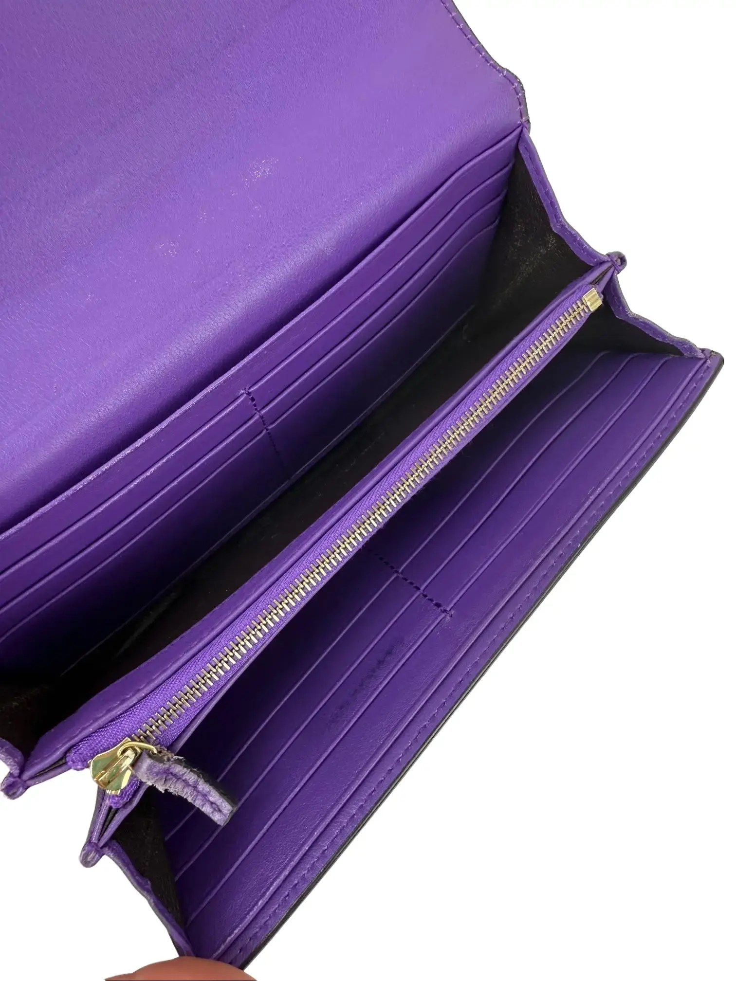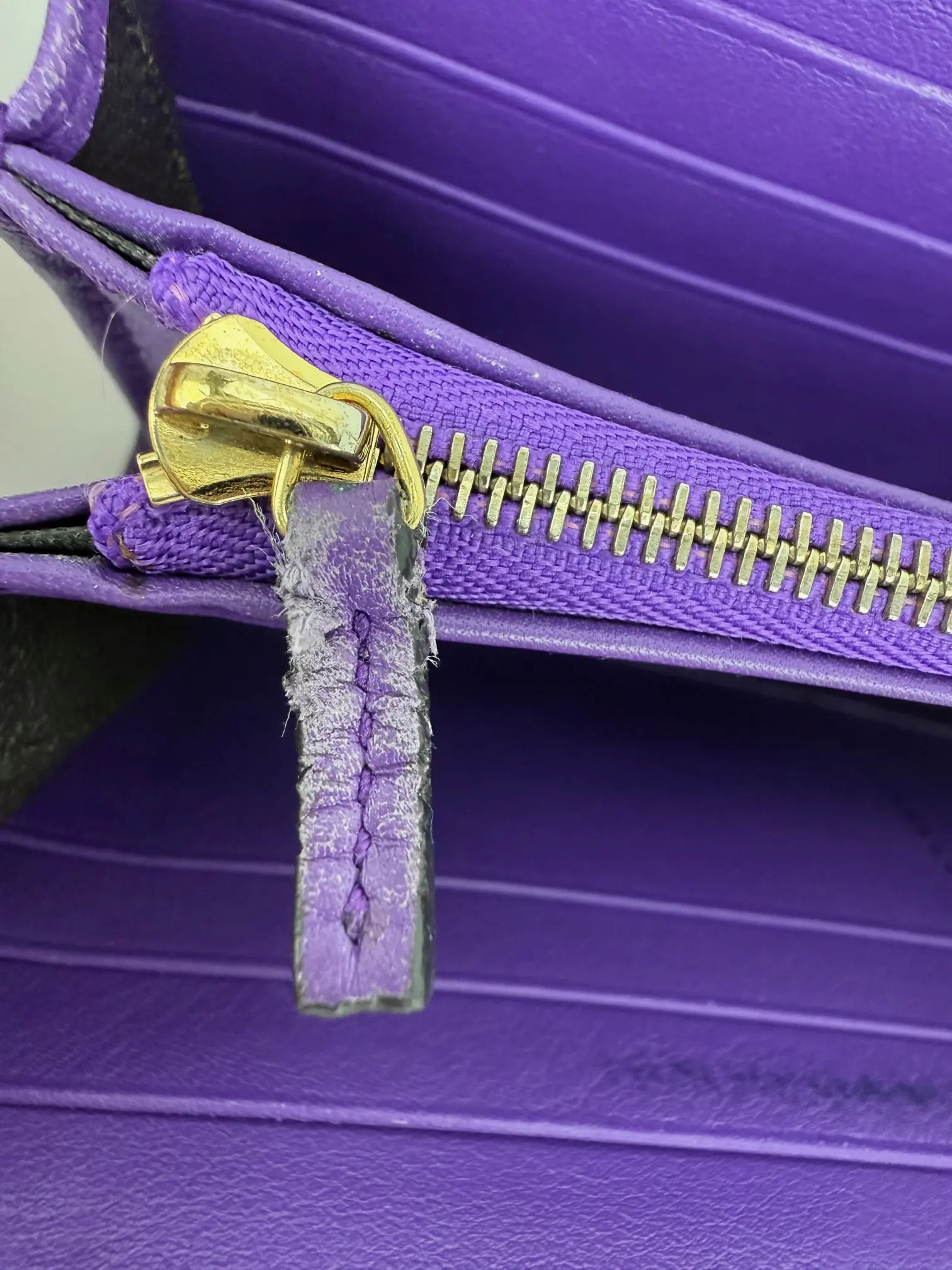 INTERIOR: some indent lines on flap from closing, leather pull tab shows little wear