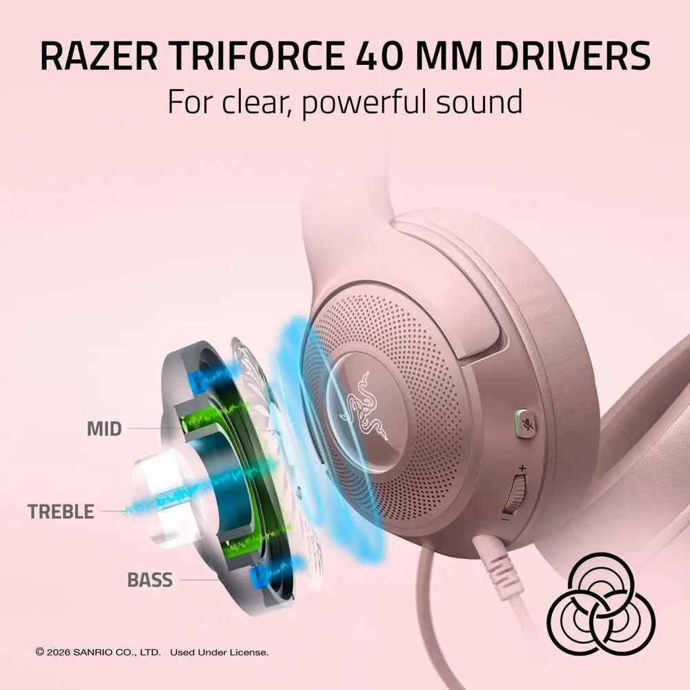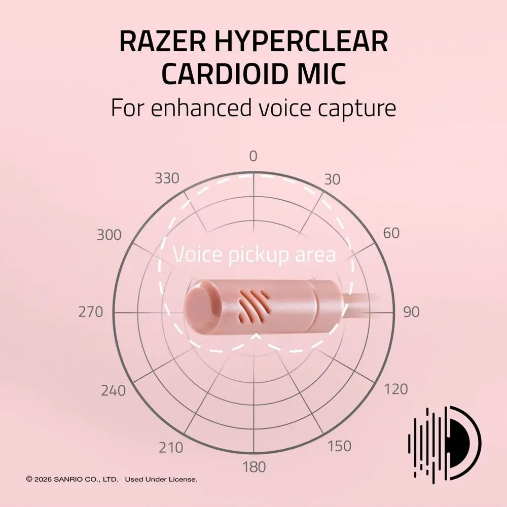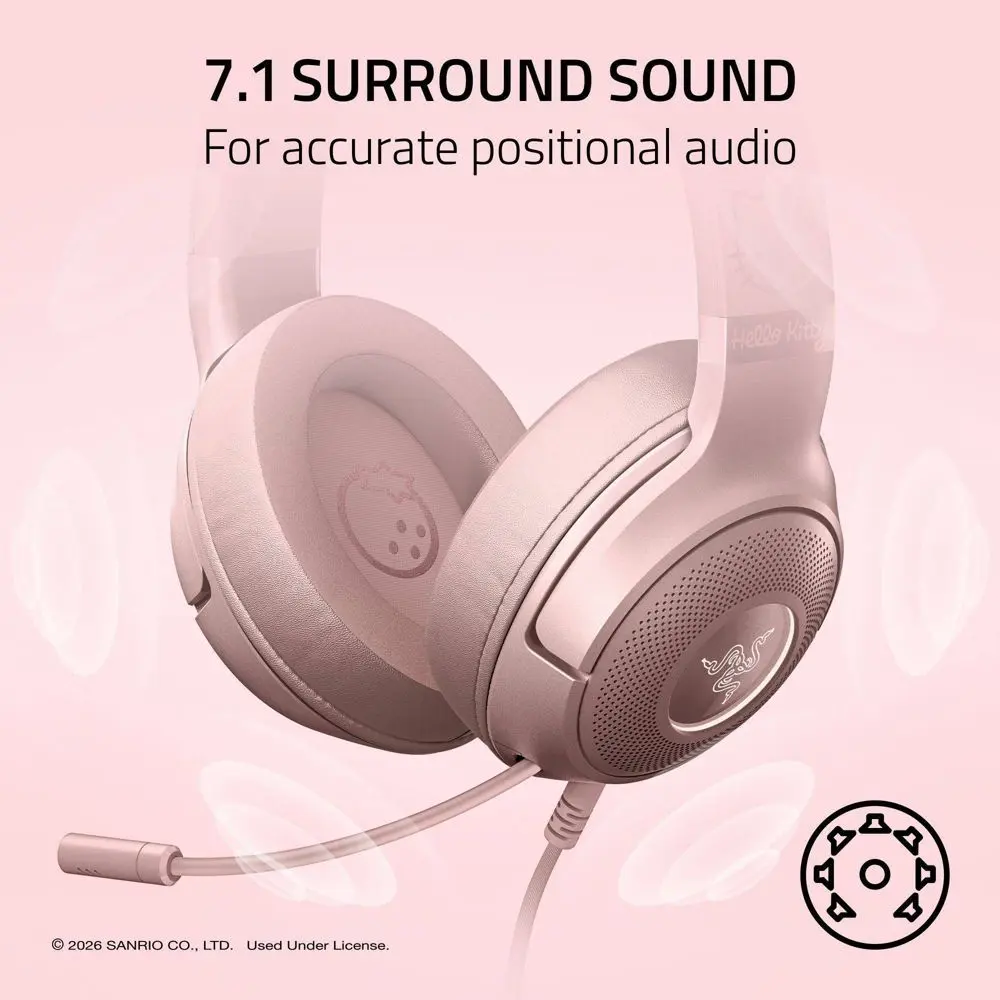 Make every moment rosy with the Razer Kraken Kitty V2 – Hello Kitty Edition. Featuring metallic rose gold earcups, iconic Hello Kitty ears, stream-reactive Razer Chroma RGB lighting, enjoy a truly sweet audio experience complete with crystal-clear sound