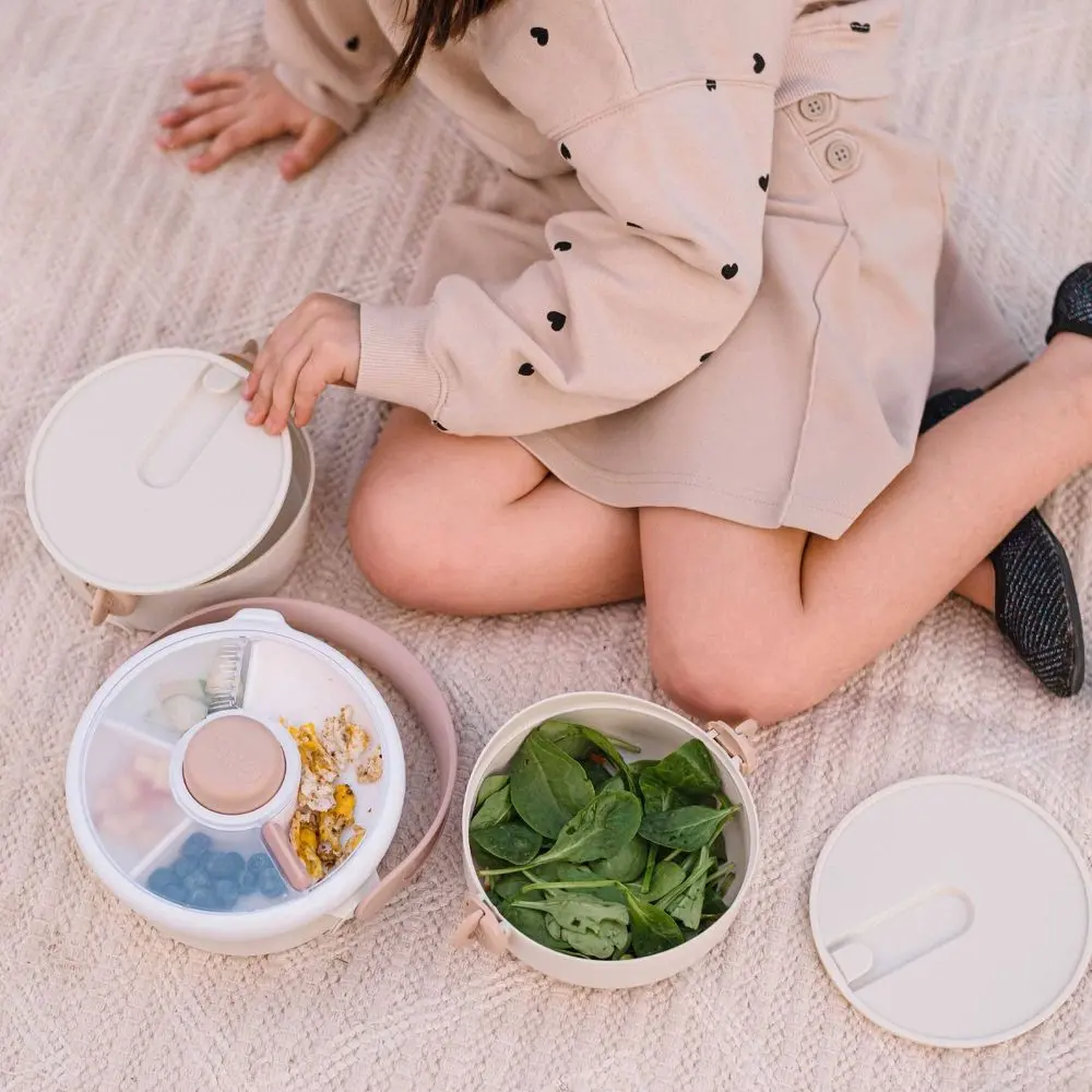 •Includes Snack Spinner on top and two food containers below for balanced meals