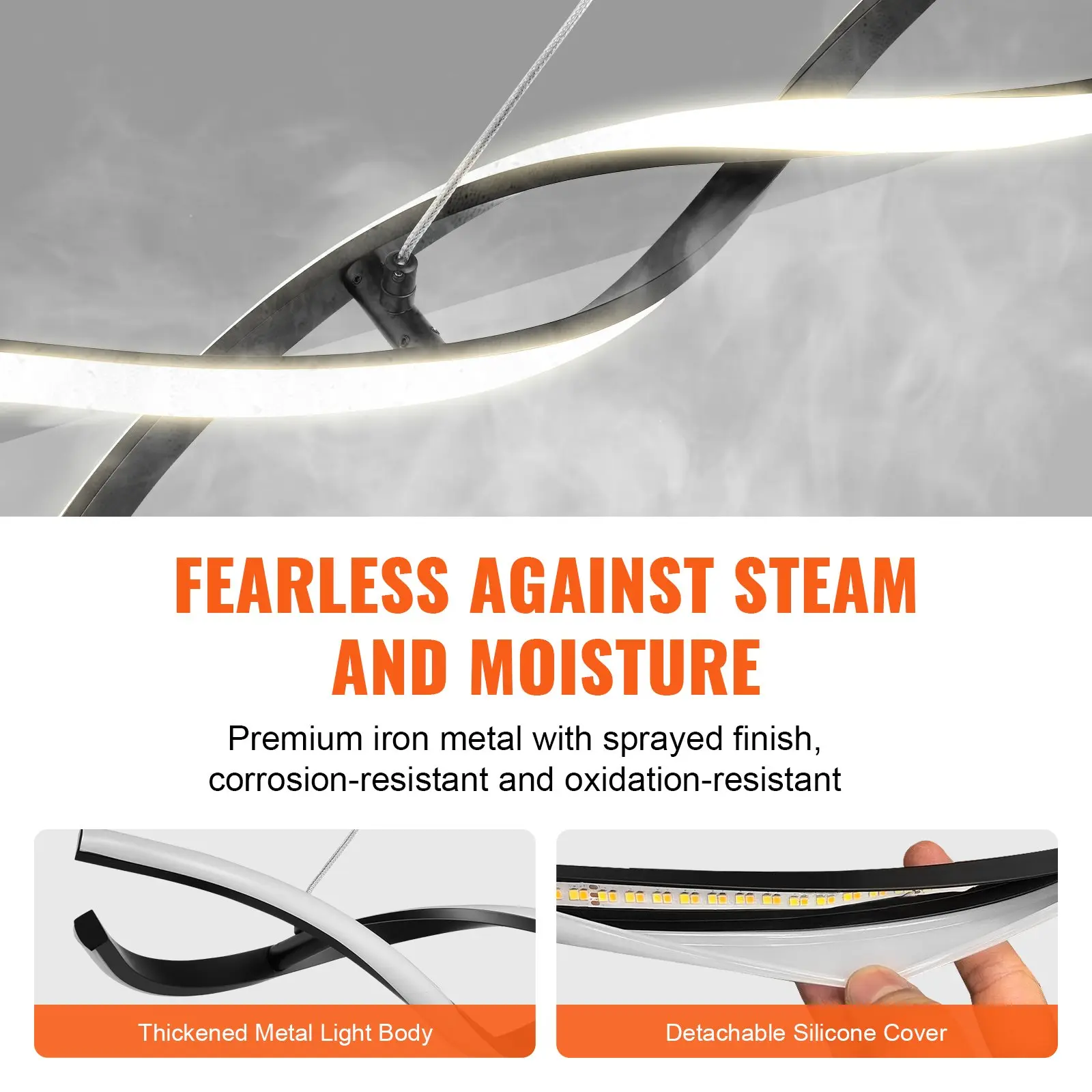 Enjoy a comfortable illumination with 59 in adjustable ropes and 3 adjustable color temperatures (3000K/4000K/6500K). Featuring premium metal light body and detachable silicone cover, our light is built to last. Operating at 24W, it is perfect for culinary masterpieces or lively family gatherings!