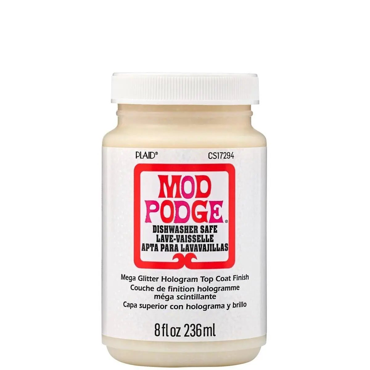 For over 50 years Mod Podge has been America's favorite glue, sealer, and finish. Mod Podge Hologram Glitter is quick-drying and dries clear, leaving a smooth, sparkling gloss finish. Preserve the beauty of your decoupage paper projects and more with this shiny multi-purpose, all-in-one sealant, glue, and finish. Use this shimmering decoupage glue to create decoupage tissue paper projects as well as projects using wood, fabric, plastic, and canvas! This handy decoupage glue comes in a variety of finishes such as gloss, matte, satin, outdoor, dishwasher safe, and many other unique formulas for every project. Let your creativity come alive with the limitless possibilities of Mod Podge Hologram Glitter.