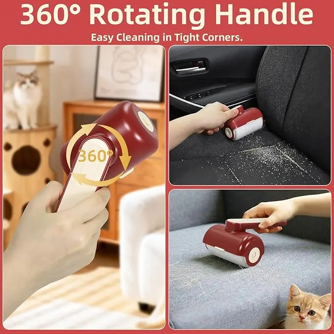·The upgraded 360° rotatable handle offers flexible angle control. Clean corners, seams, couch gaps, car seats, and narrow spaces effortlessly. A smarter design for detailed cleaning, surpassing standard mini lint rollers.