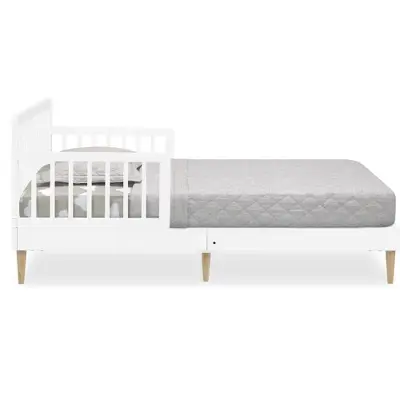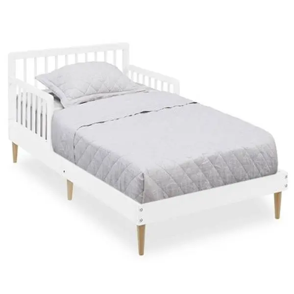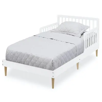 Your little one will love upgrading to a big-kid bed with the Jordan Toddler Bed by Delta Children. This sturdy wood bed built just for toddlers features modern spindles and natural-colored feet to make the transition from crib to toddler bed easier than ever. The low profile and two attached guardrails provide a safe and comfortable sleeping space that helps your active toddler easily get in and out of bed on their own. Bed fits a standard size crib mattress, mattress not included.