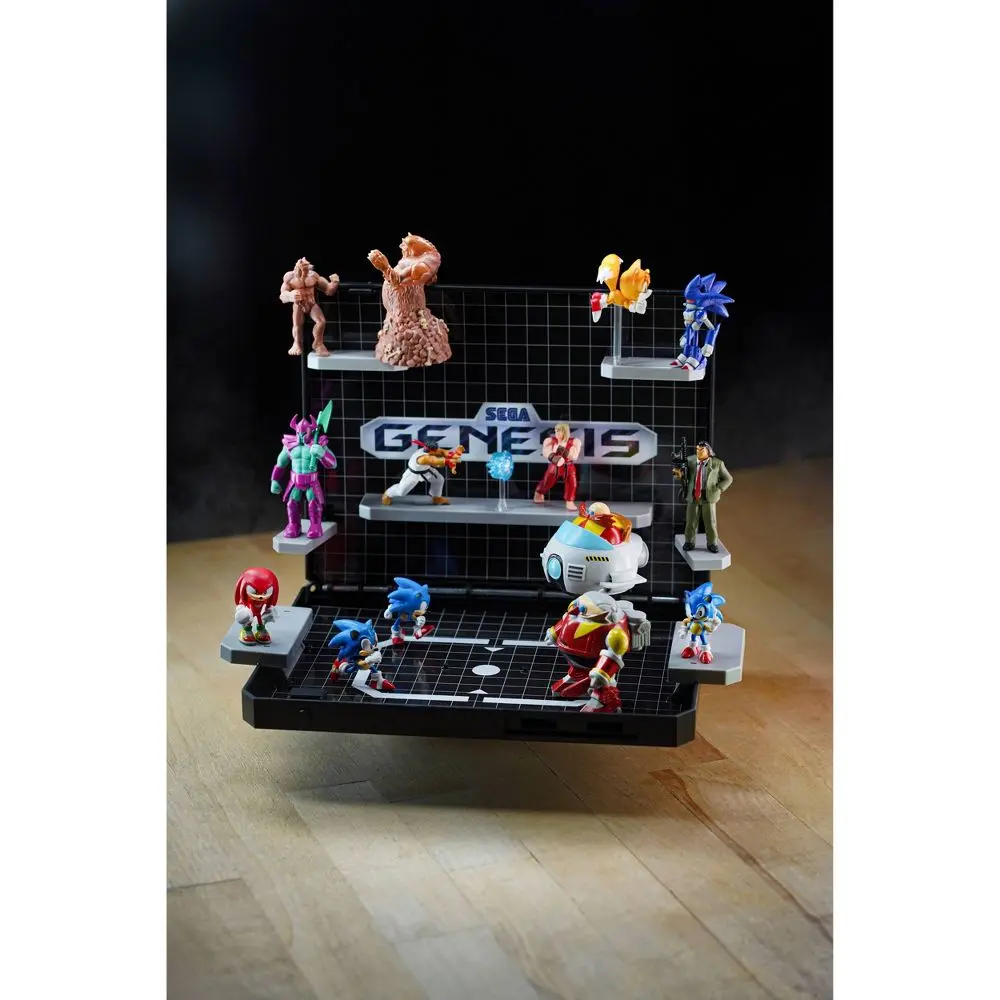 The ultimate collector’s centerpiece! The Console Heroes Supervillain Boss Bundle brings retro gaming glory to life in 3D. Styled after the iconic Sega Genesis console, it flips open to reveal shelving and gridline deco sticker graphics designed to display Mecha Robotnik, Mecha Sonic, Mr. X, and Death Bringer, with room to showcase the rest of your Console Heroes collection. It also includes the exclusive Sonic the Hedgehog 1 diorama cartridge, recreating Sonic’s battle with Eggman’s Eggmobile in Labyrinth Zone—only available in this bundle.