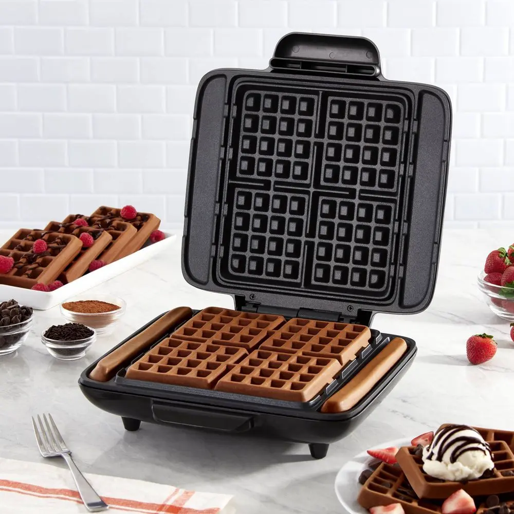 •Makes four, 4x4" traditional style waffles that are 1" thick.