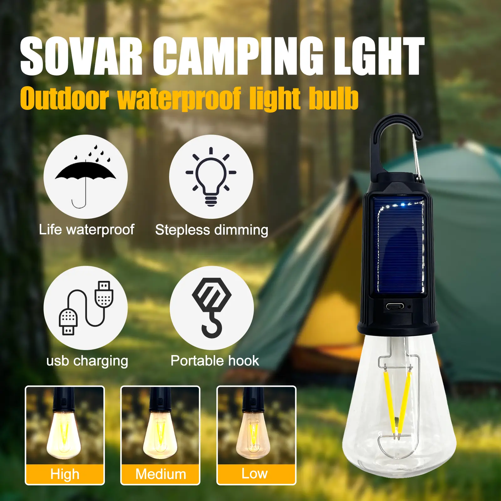 When outdoor light is unstable or power goes out at home, you need a compact light that is easy to carry, easy to hang, and easy to recharge. This Solar LED Camping Lantern is designed for camping, hiking, fishing, tent use, and emergency lighting with a portable hanging design, built-in rechargeable battery, and 3 practical lighting modes. With both solar and USB charging options, it is a convenient lighting solution for outdoor adventures and everyday backup use.
