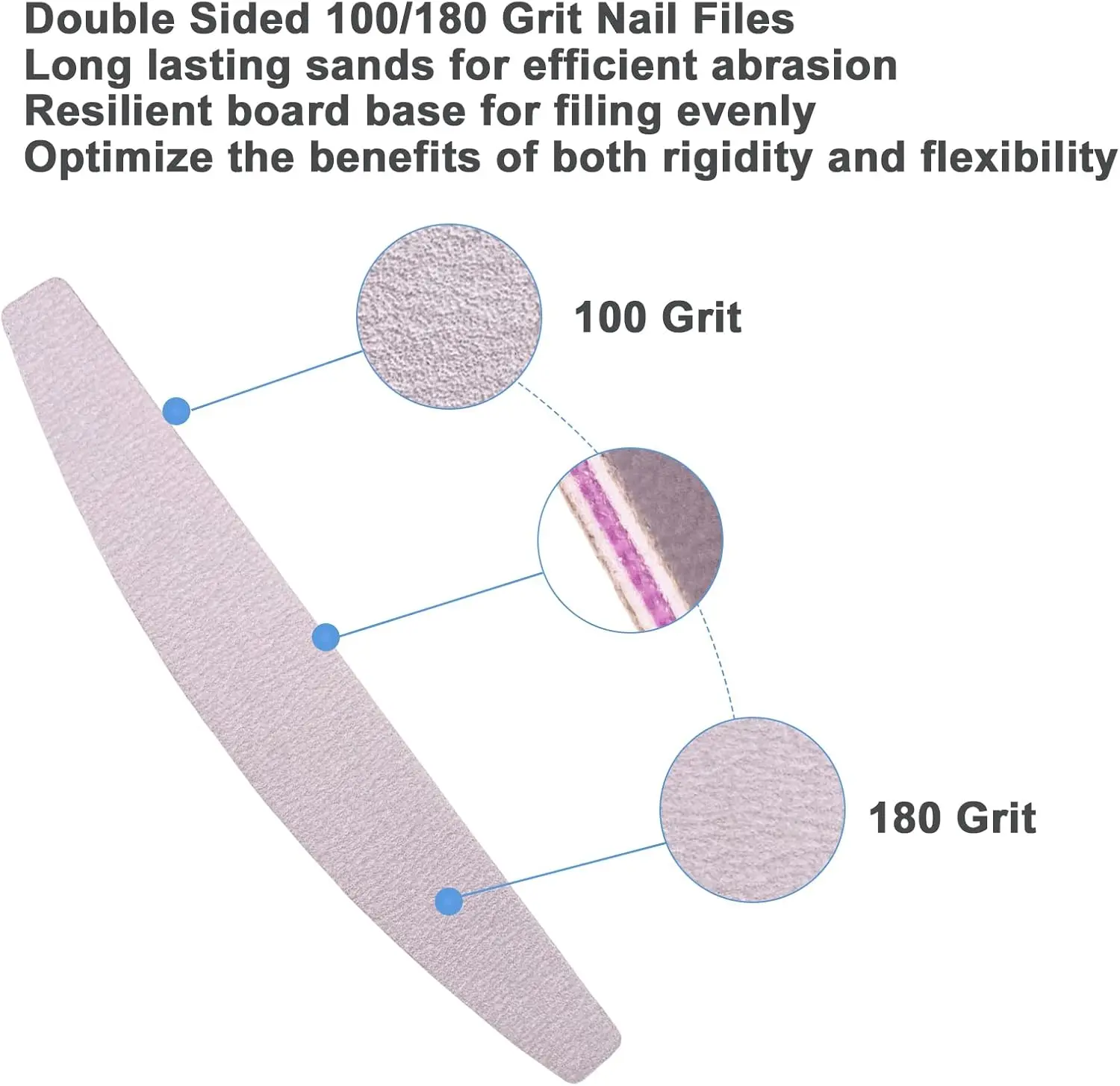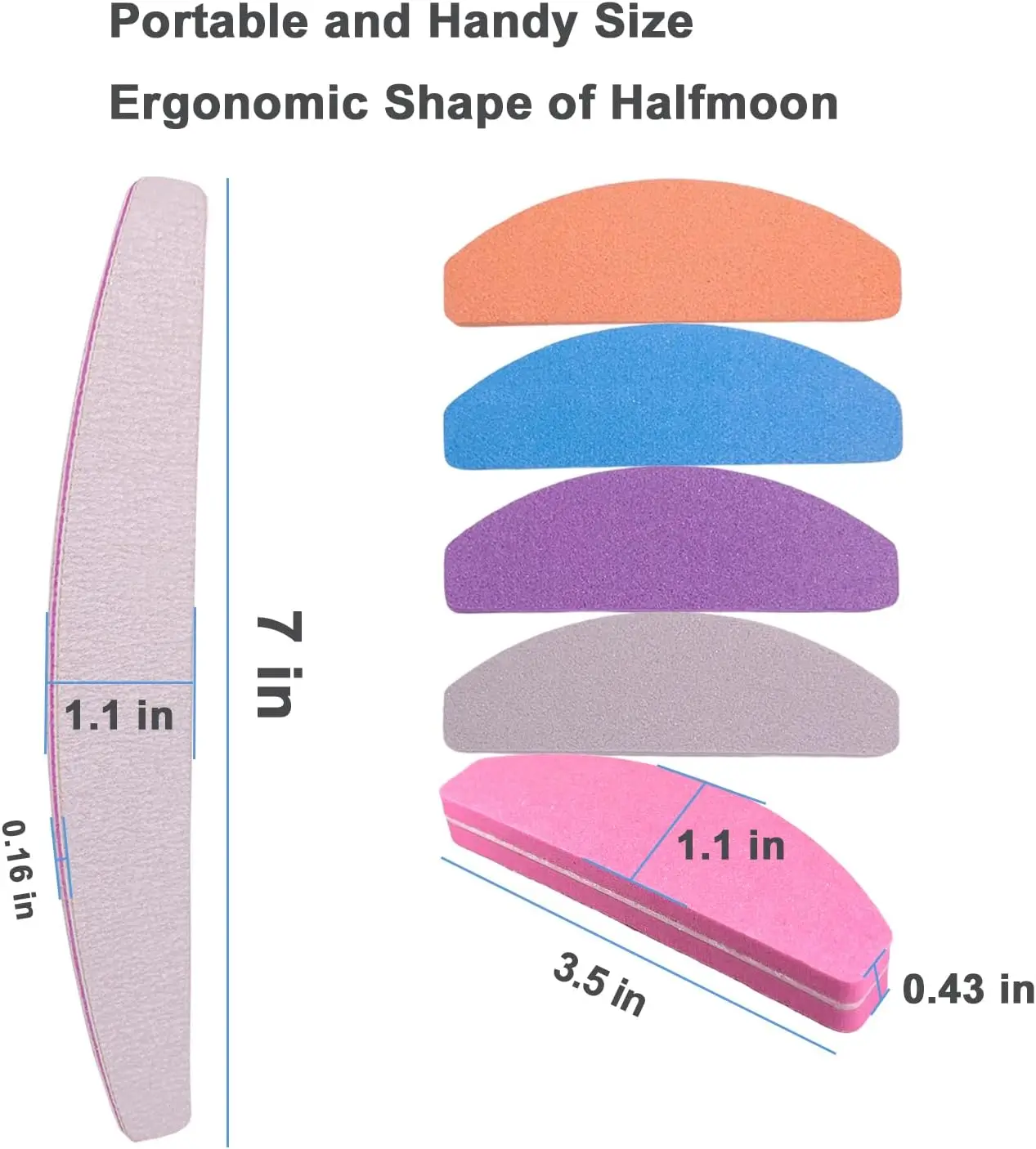 ·Ergonomic Design: Comfortable 7.01-inch files and 3.5-inch buffers with a half-moon shape for easy handling and travel use.