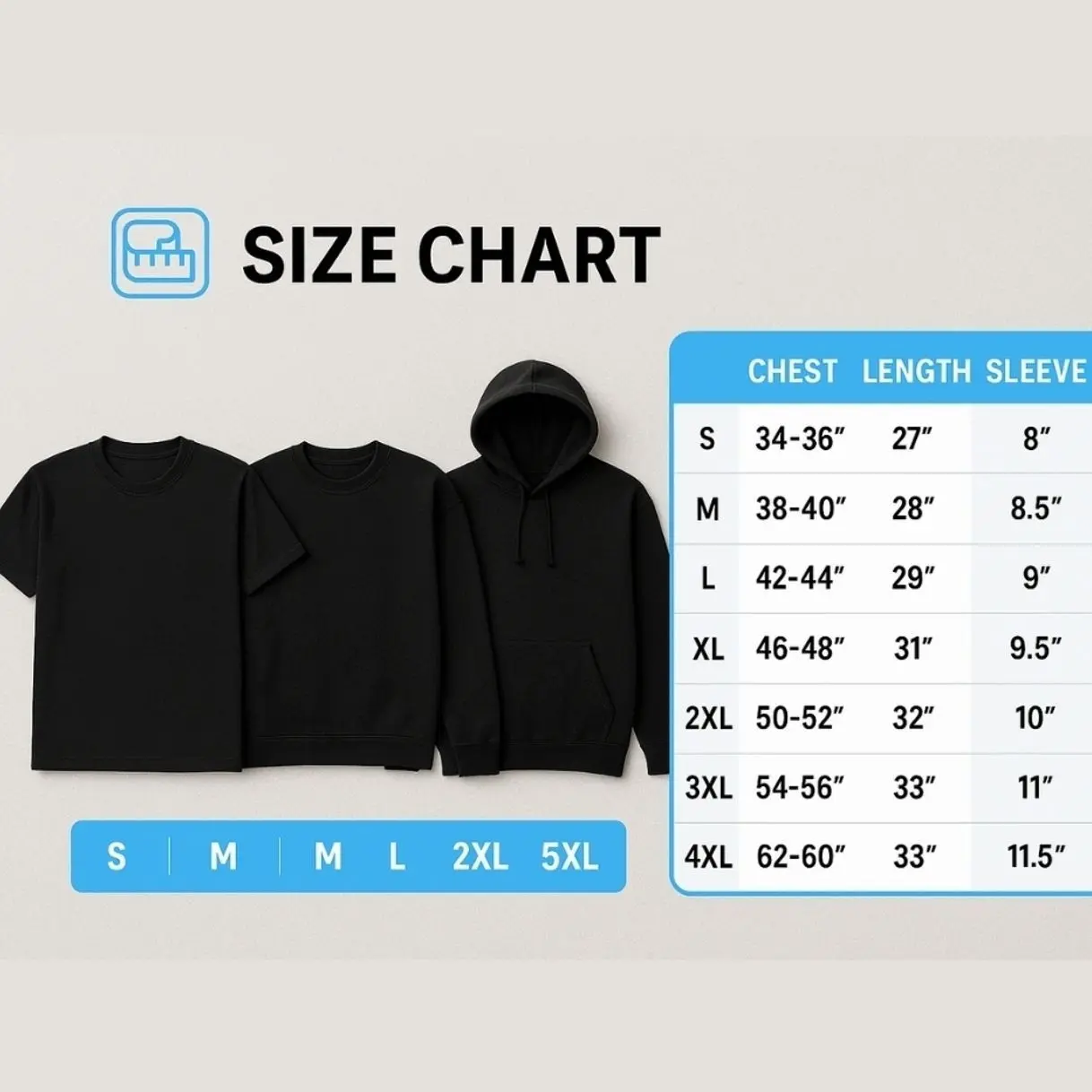 - 50/50 cotton/polyester for sweatshirt and hoodie