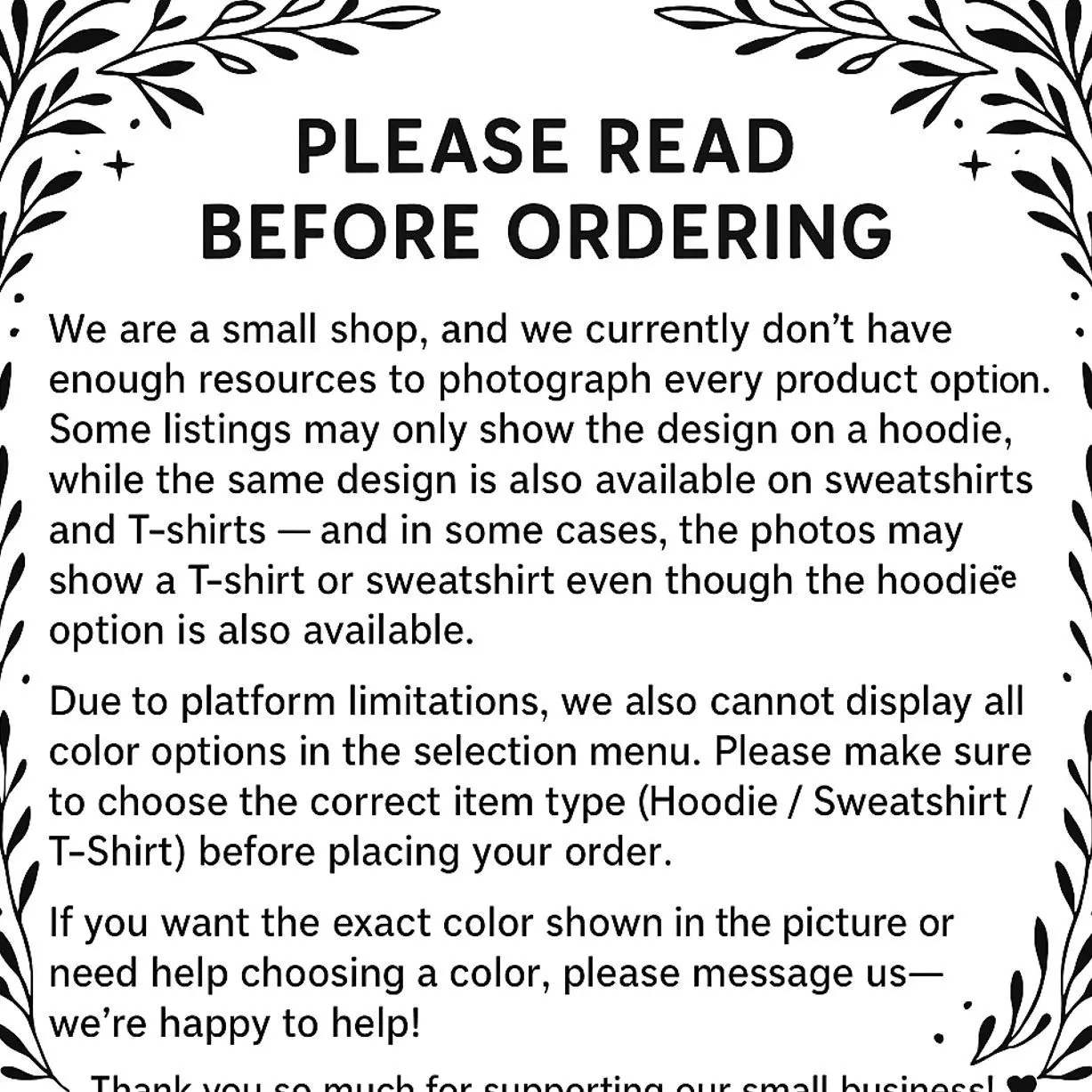 CUSTOM SHIRTS: Customize in any way, please message us to custom your own design and different color shirts just for you!