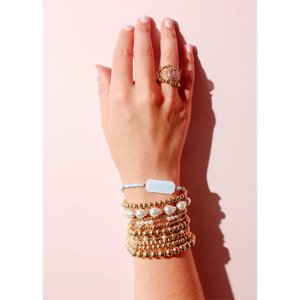 This is a colorful beaded bracelet that features a custom acrylic bead — the perfect accessory to celebrate the special women in your life! A meaningful piece that’s timeless. The stretch fit ensures easy, comfortable wear — perfect for stacking or wearing solo. A thoughtful gift for Mother’s Day, birthdays, or any day you want to show your love.