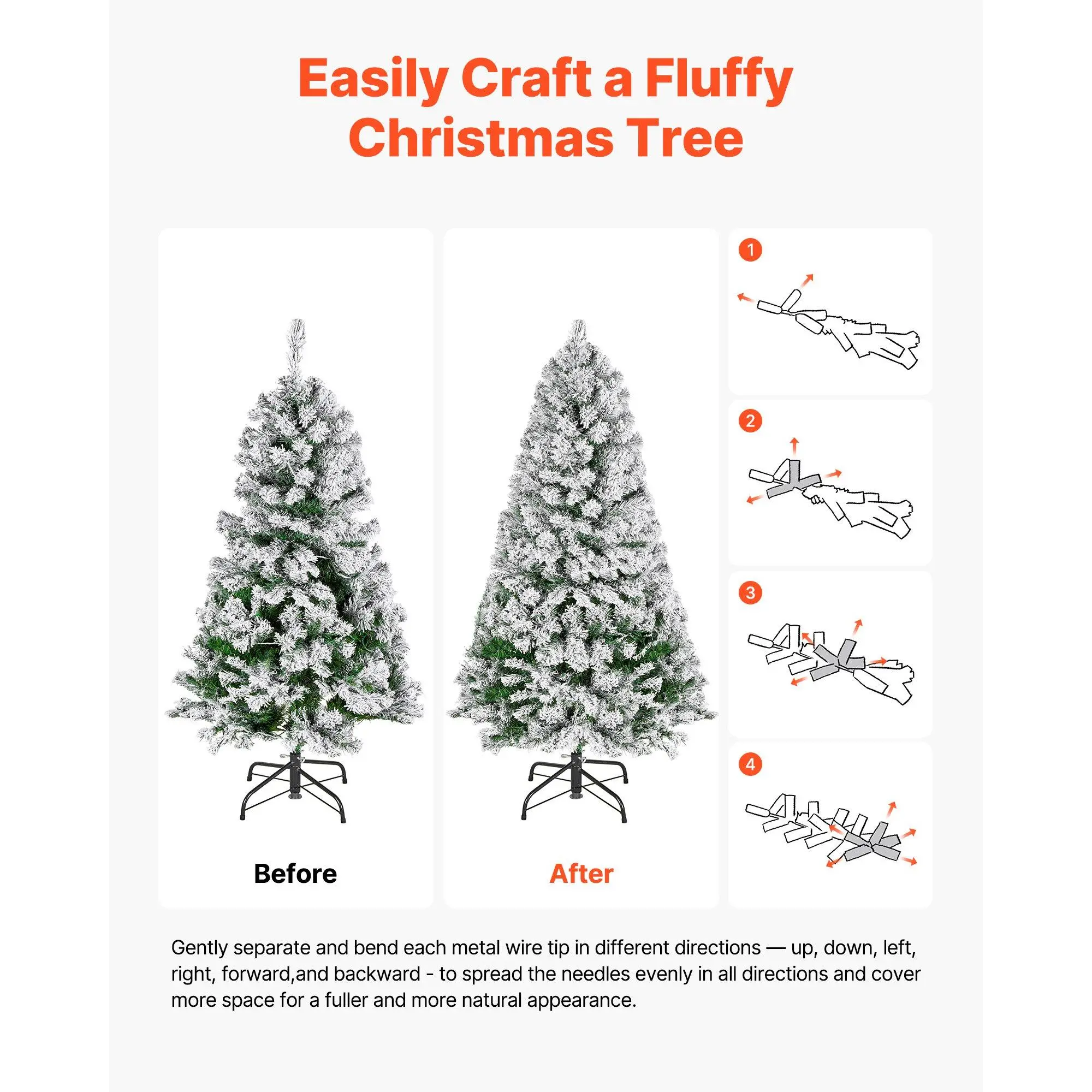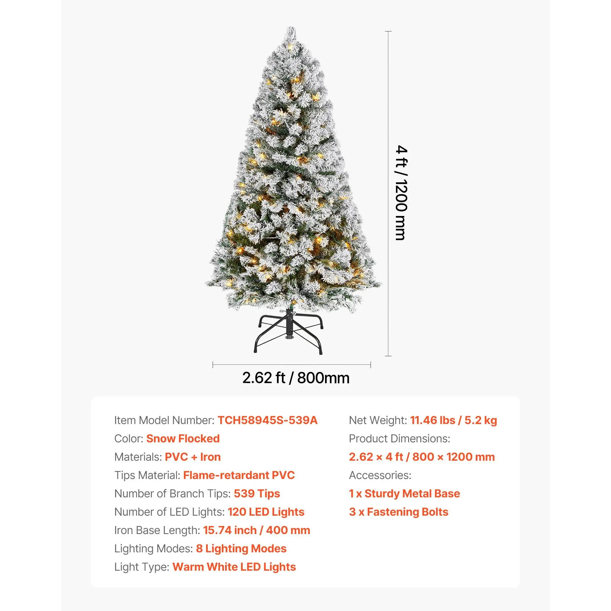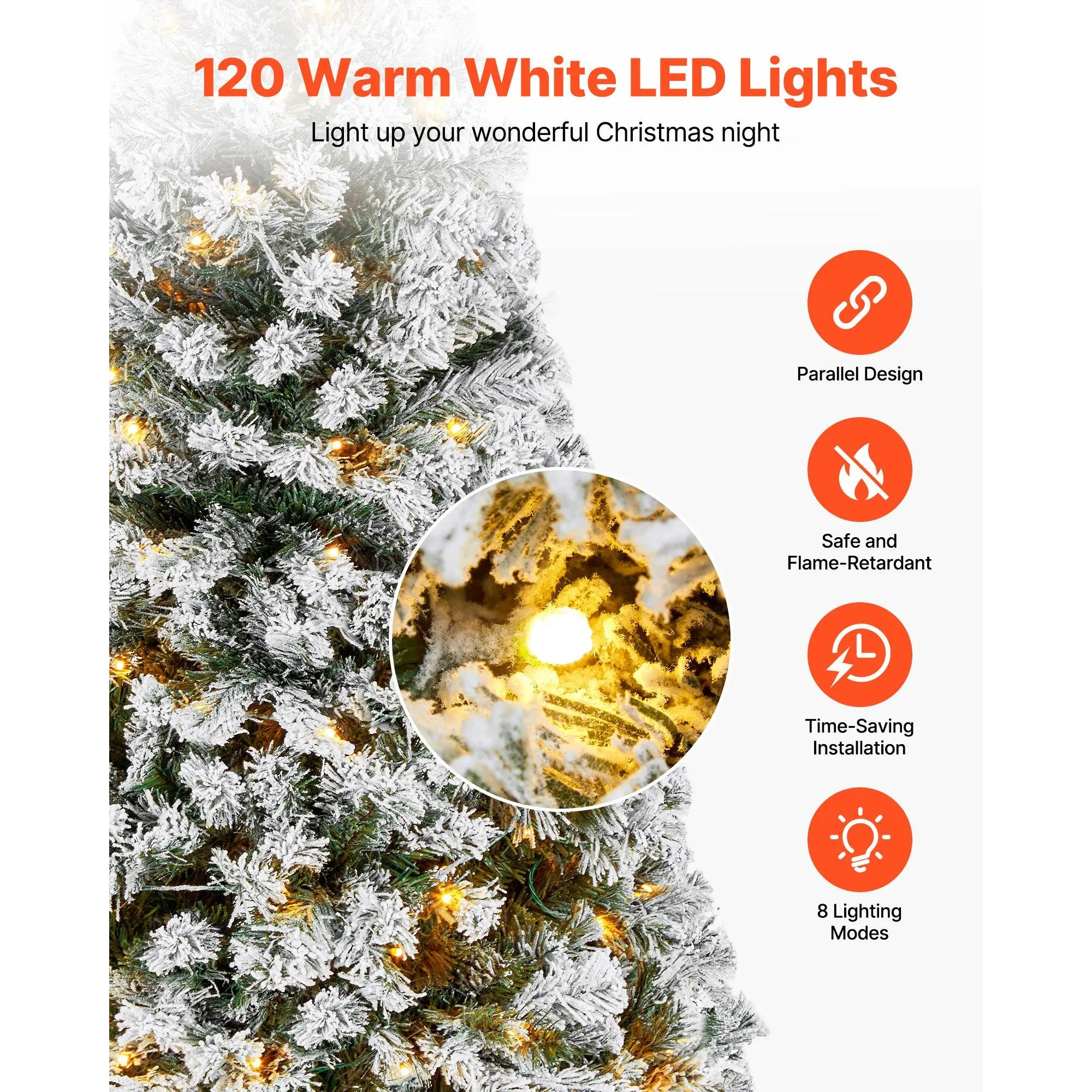 Let VEVOR snow flocked Christmas trees be the centerpiece of your holiday celebrations, filling your home with warmth, joy, and festive spirit. With 539 branch tips, 120 warm white LEDs and 8 lighting modes, it creates a rich holiday atmosphere for you and your loved ones to cherish.